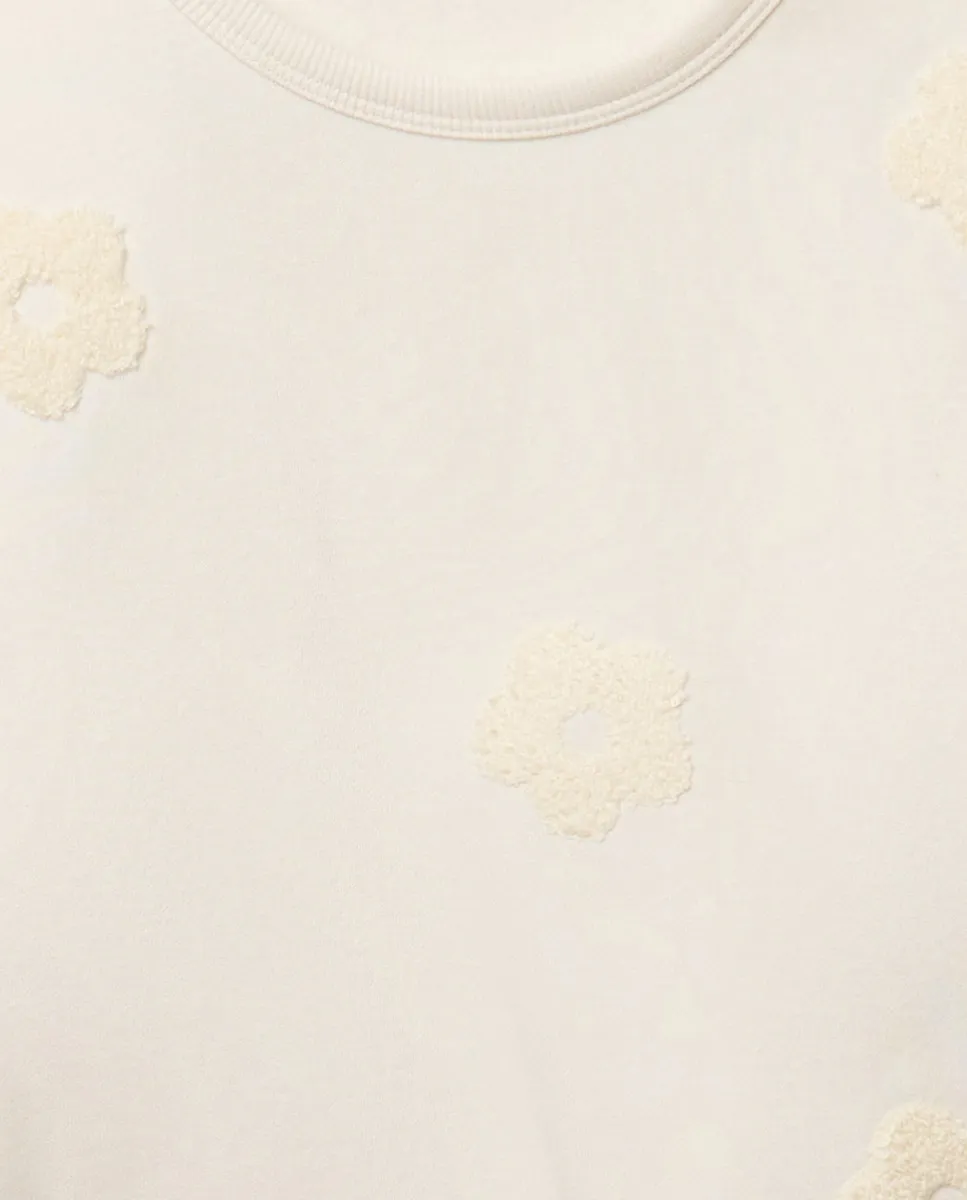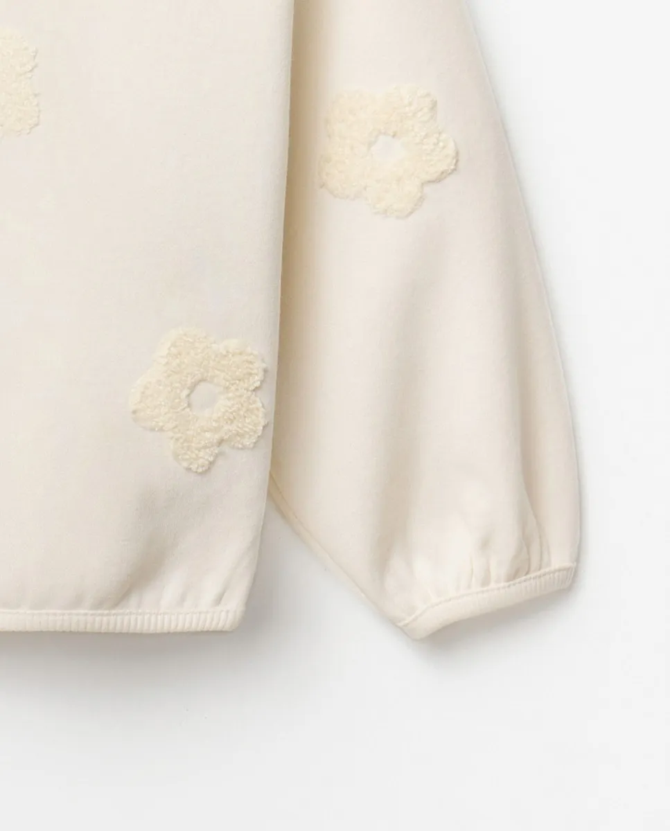 Свитшот с длинными рукавами и детализированными цветами из махровой ткани