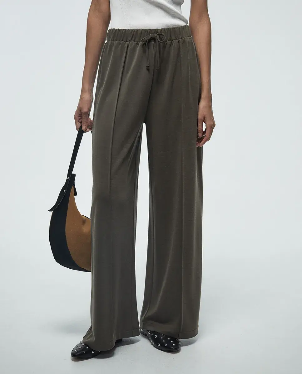 Свободные брюки с резинкой на талии и передними швами