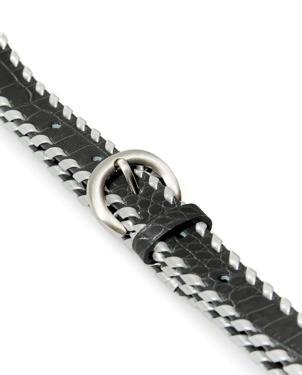 Набор из двух ремней с плетеным деталем. Застежка на пряжку.