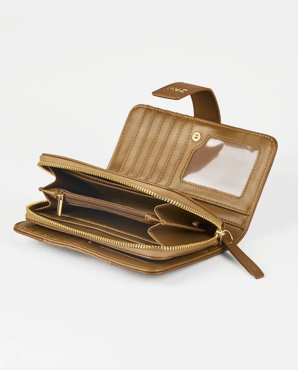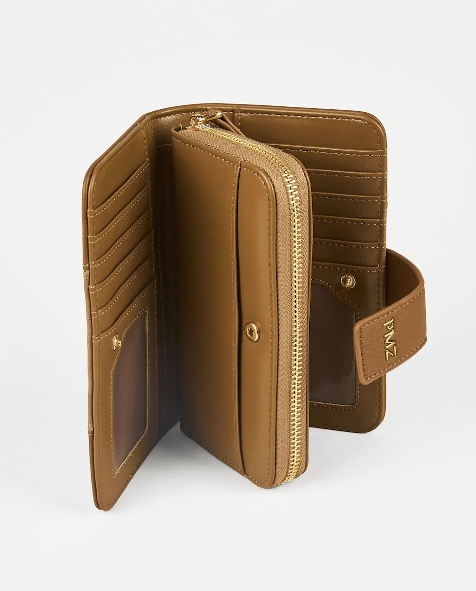 Кошелек PACOMARTINEZ выполнен из материала с эффектом кожи цвета камел. Его вместительный и функциональный дизайн включает застежку с кнопкой, внутреннее отделение для монет на молнии и многочисленные карманы для карт и документов. Практичная модель, которая выделяется своим элегантным и вне времени стилем, идеальна для повседневного использования.