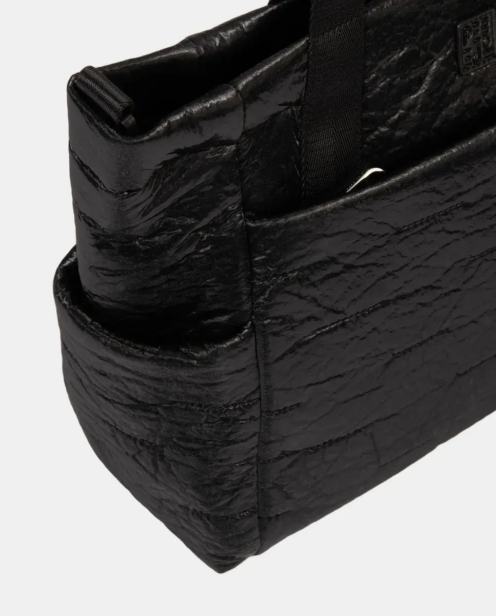 Сумка-шоппер с плечевыми ручками и блестящей текстурой.