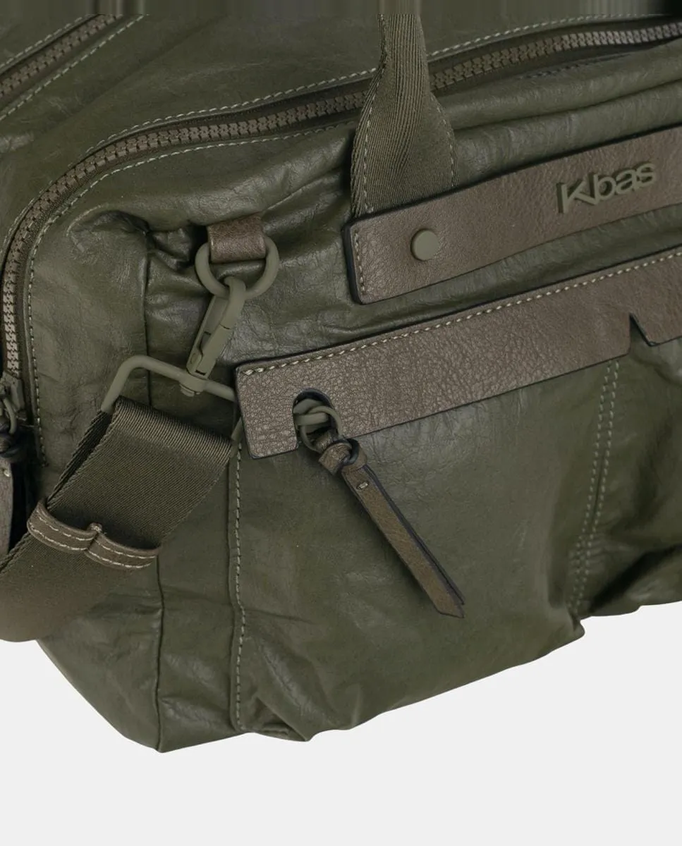 Кейл биг с эффектом складок в цвете хаки из PU для создания ощущения мягкости и комфорта; с тонкими швами, подчеркивающими его структурированный силуэт. Его дизайн включает практичный передний карман на молнии и два индивидуальных отделения, идеальных для быстрого доступа к основным вещам. Также имеется верхняя молния и задний карман на молнии. Сумка имеет две верхние ручки, которые обеспечивают универсальность и комфорт, вместе с дополнительной съемной плечевой ручкой. Все металлические детали и логотип отделаны в цвете самой сумки, придавая ей современный вид.