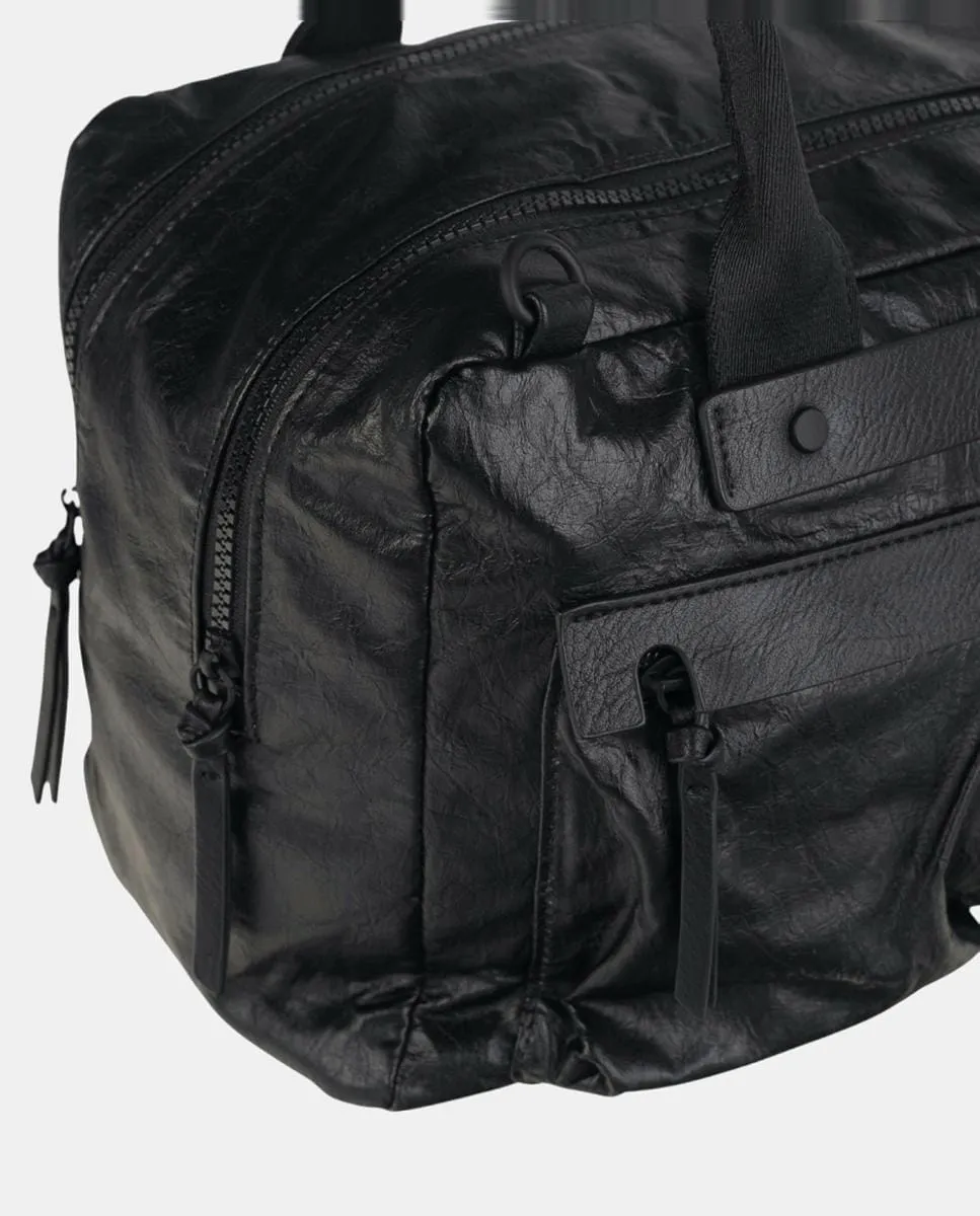 Черная пуговка с рельефной текстурой для создания ощущения мягкости и комфорта сумки, с тонкими швами, которые подчеркивают ее структурированный силуэт. Дизайн включает практичный передний карман на молнии и два отдельных отсека, идеально подходящих для быстрого доступа к необходимому. Также есть верхняя молния и задний карман на молнии. Две верхние ручки обеспечивают универсальность и комфорт, а также дополнительная и съемная плечевая ручка. Все металлические детали и логотип отделаны в тон сумки для придания современного вида.