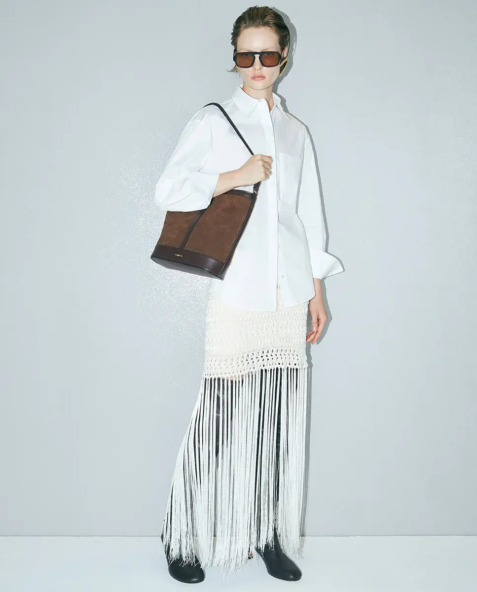 Большая сумка с комбинированным материалом. Короткая ручка и застежка на магнитной кнопке. Кожа 100%