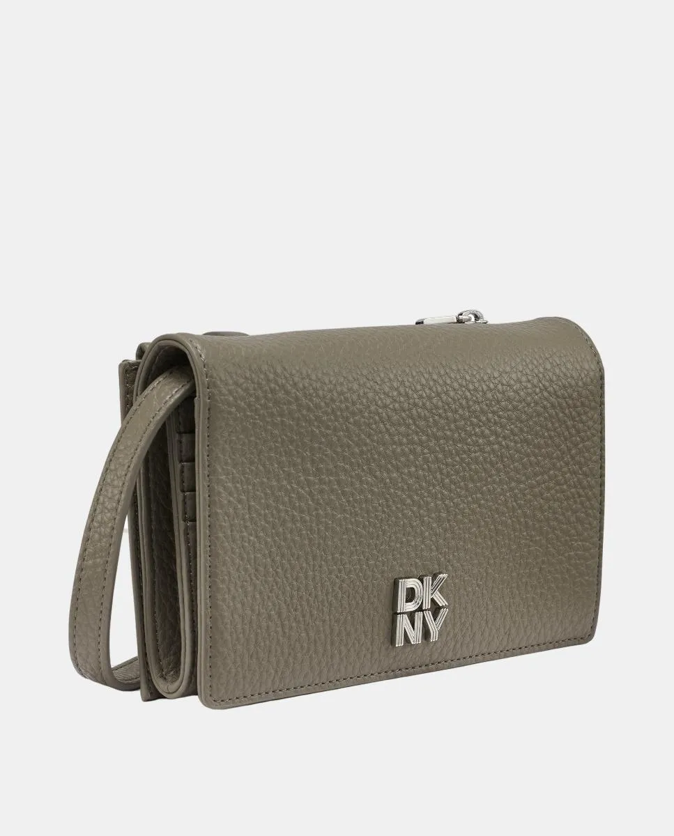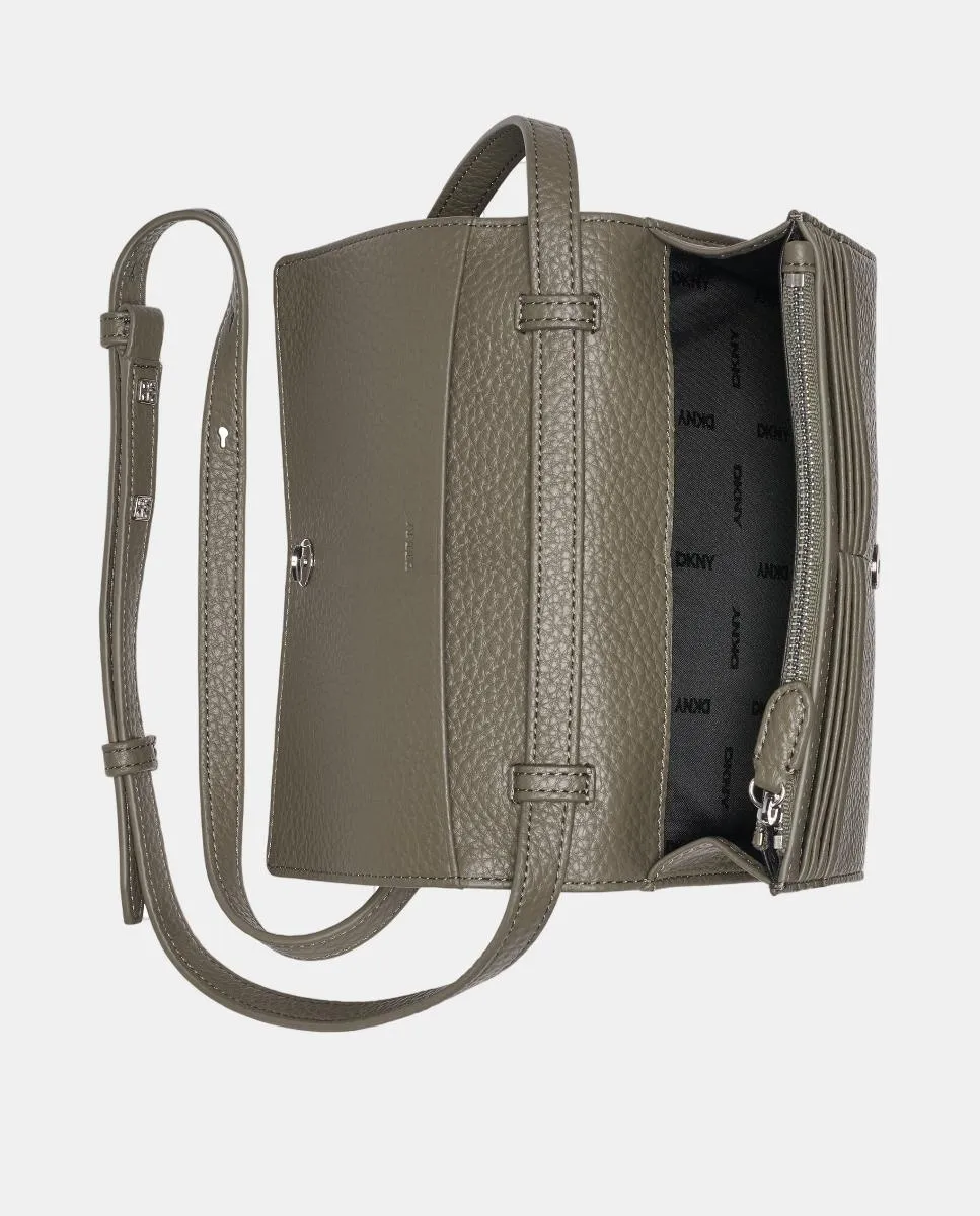 Сумка-клатч ETTA с перекрестной ручкой, клапаном с магнитной застежкой и логотипом DKNY из металла на передней части. Карман с застежкой-молнией на задней стороне.