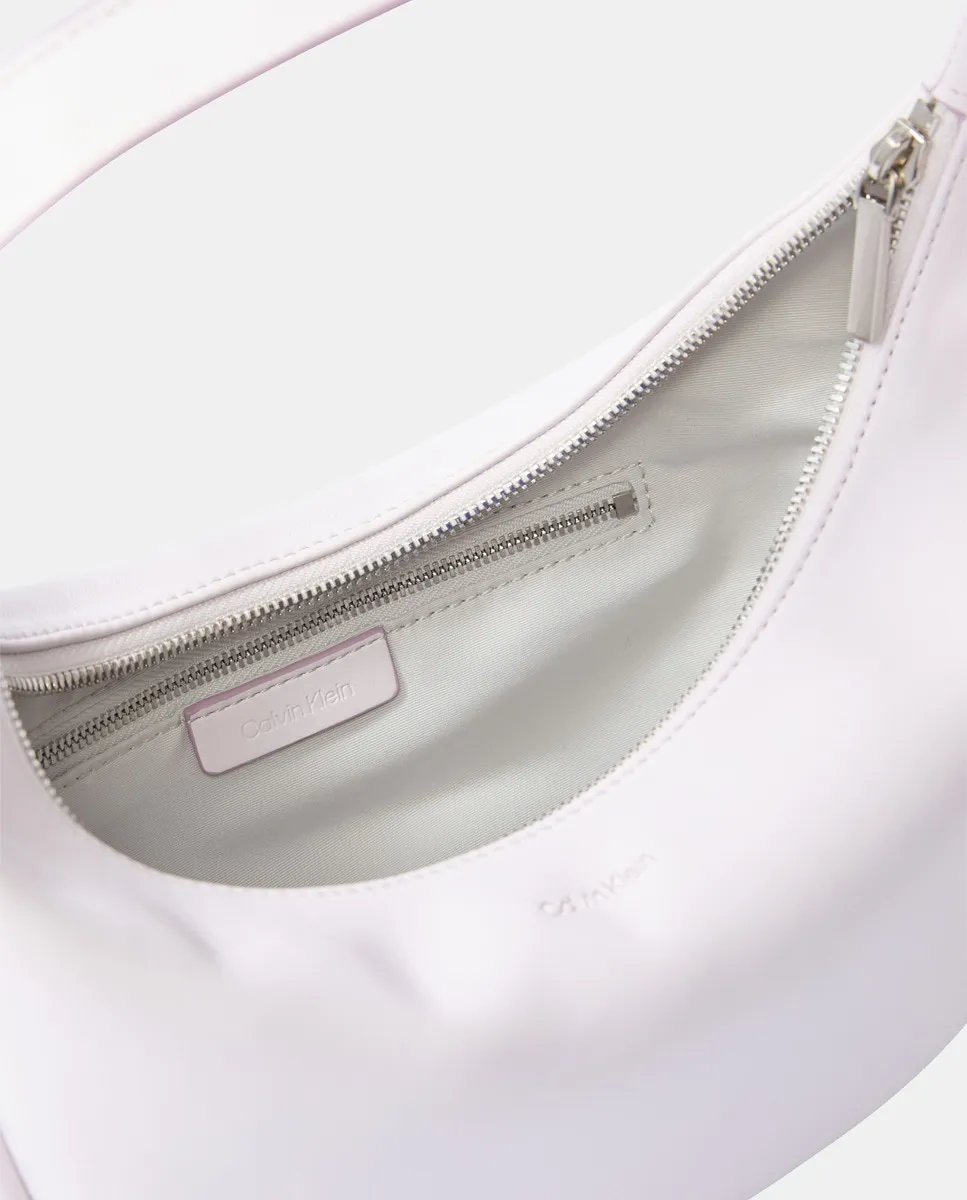 Сумка через плечо Calvin Klein с короткой ручкой, застёжка на молнии, логотип с запрессовкой на передней части, мягкое на ощупь покрытие и украшения из серебра на ручке