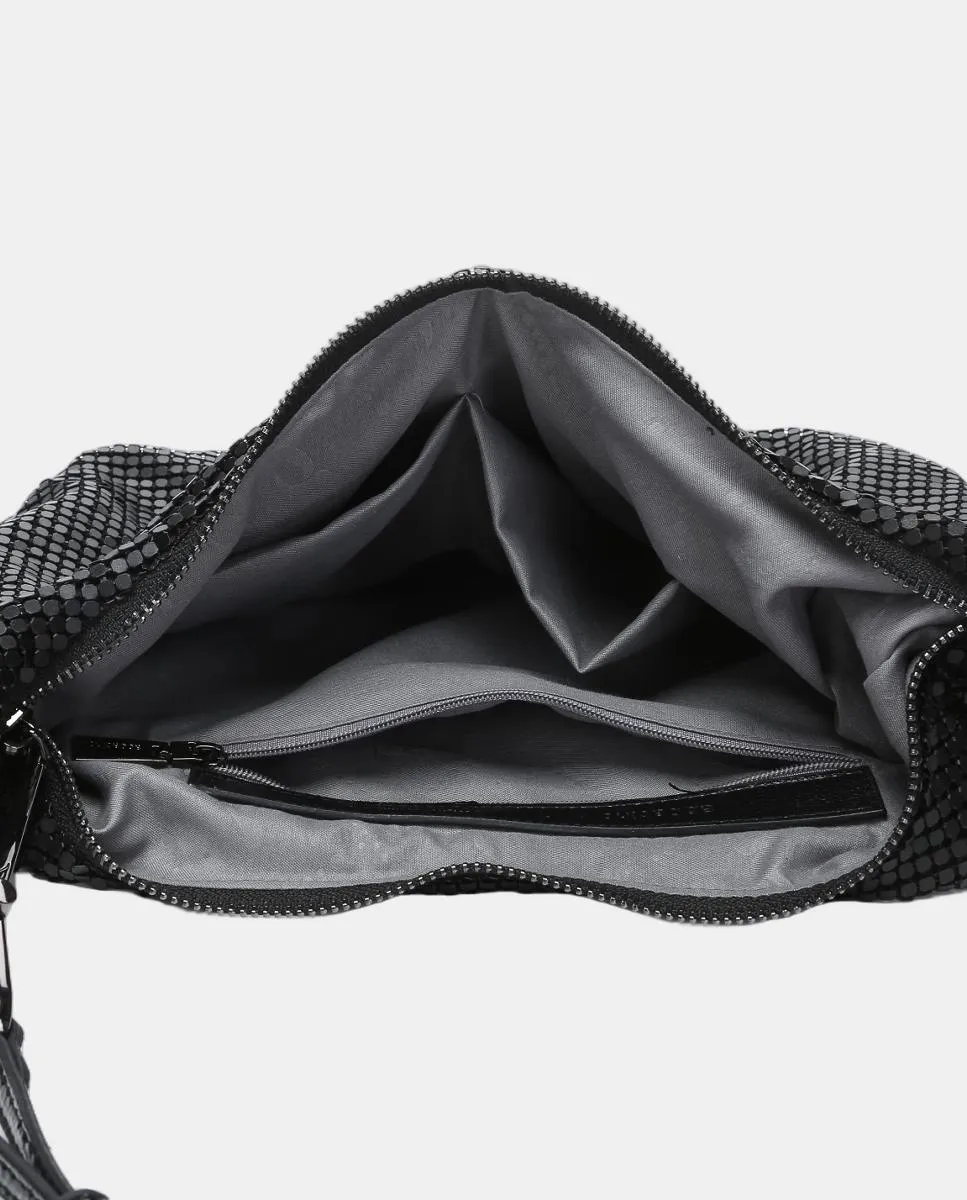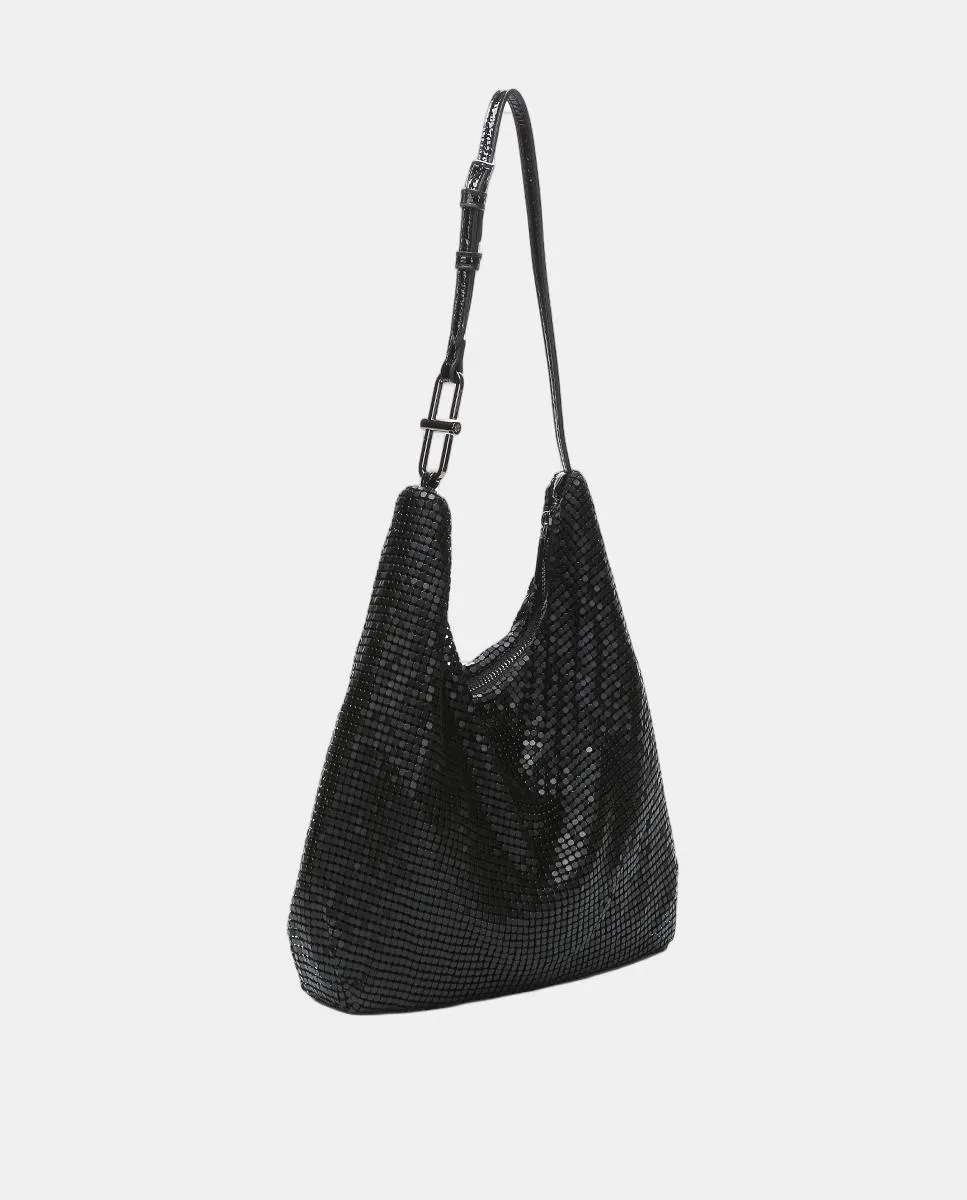 Сумка-хобо, изготовленная из металлической сетки. Ее большая внутренняя емкость, верхняя застежка на молнии и удобная плечевая ручка делают ее идеальной для ношения ваших необходимых вещей. Включает внутренний карман на молнии и подкладку, что обеспечивает как стиль, так и функциональность. Идеально подходит для особых мероприятий, является отличным выбором для создания уникальных образов.