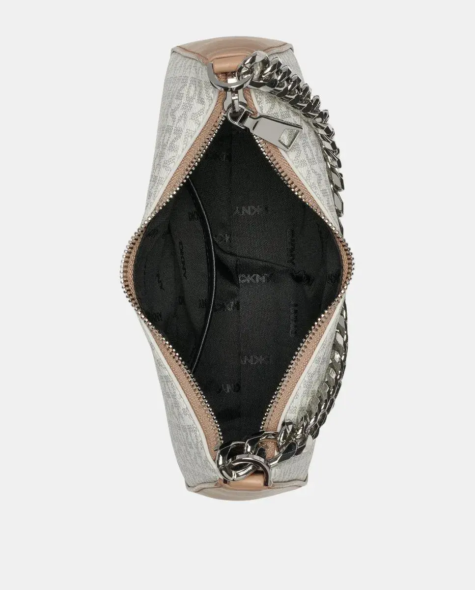 Сумка JENNA с плечевым ремнем и ручкой из цепочки, с монограммным принтом. Застежка на молнии.