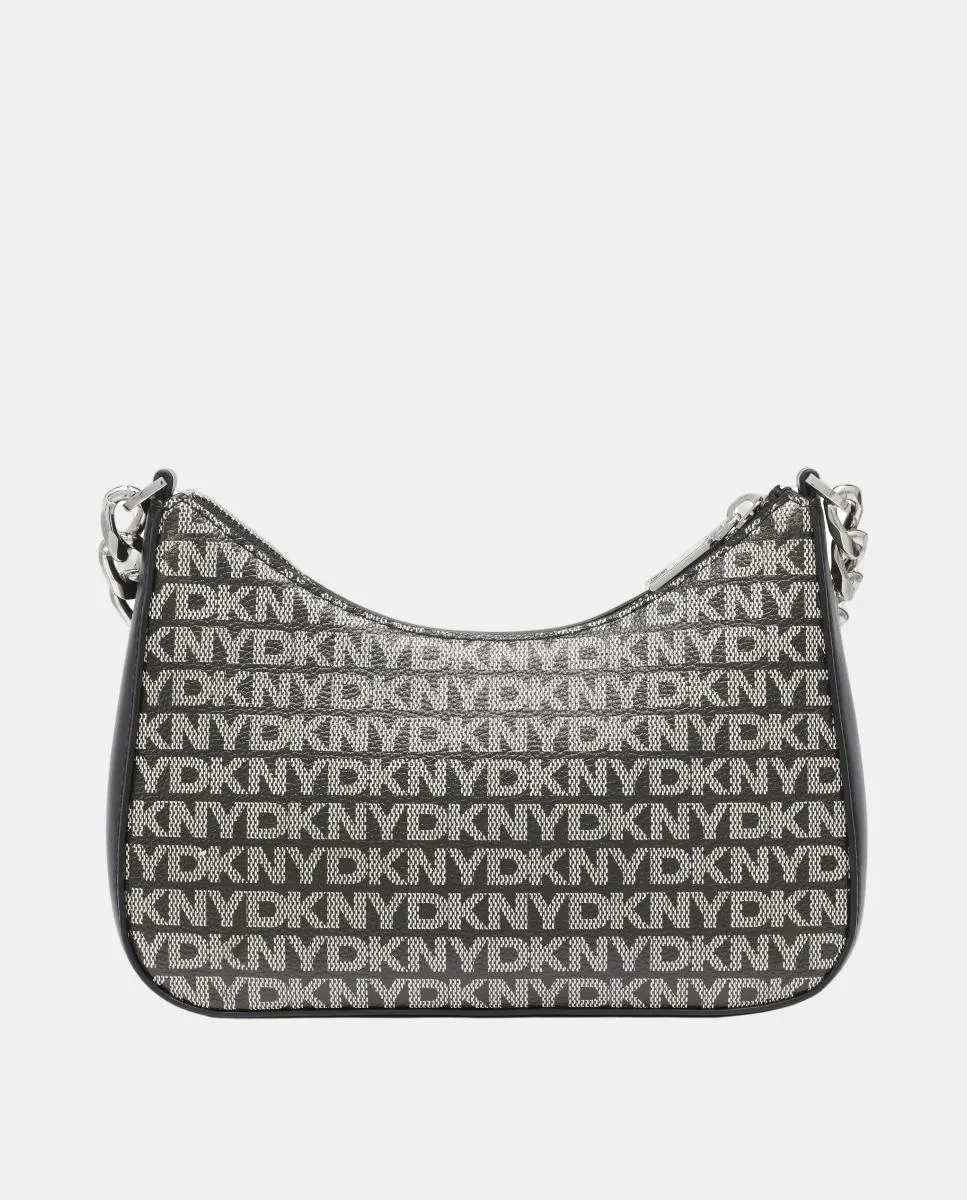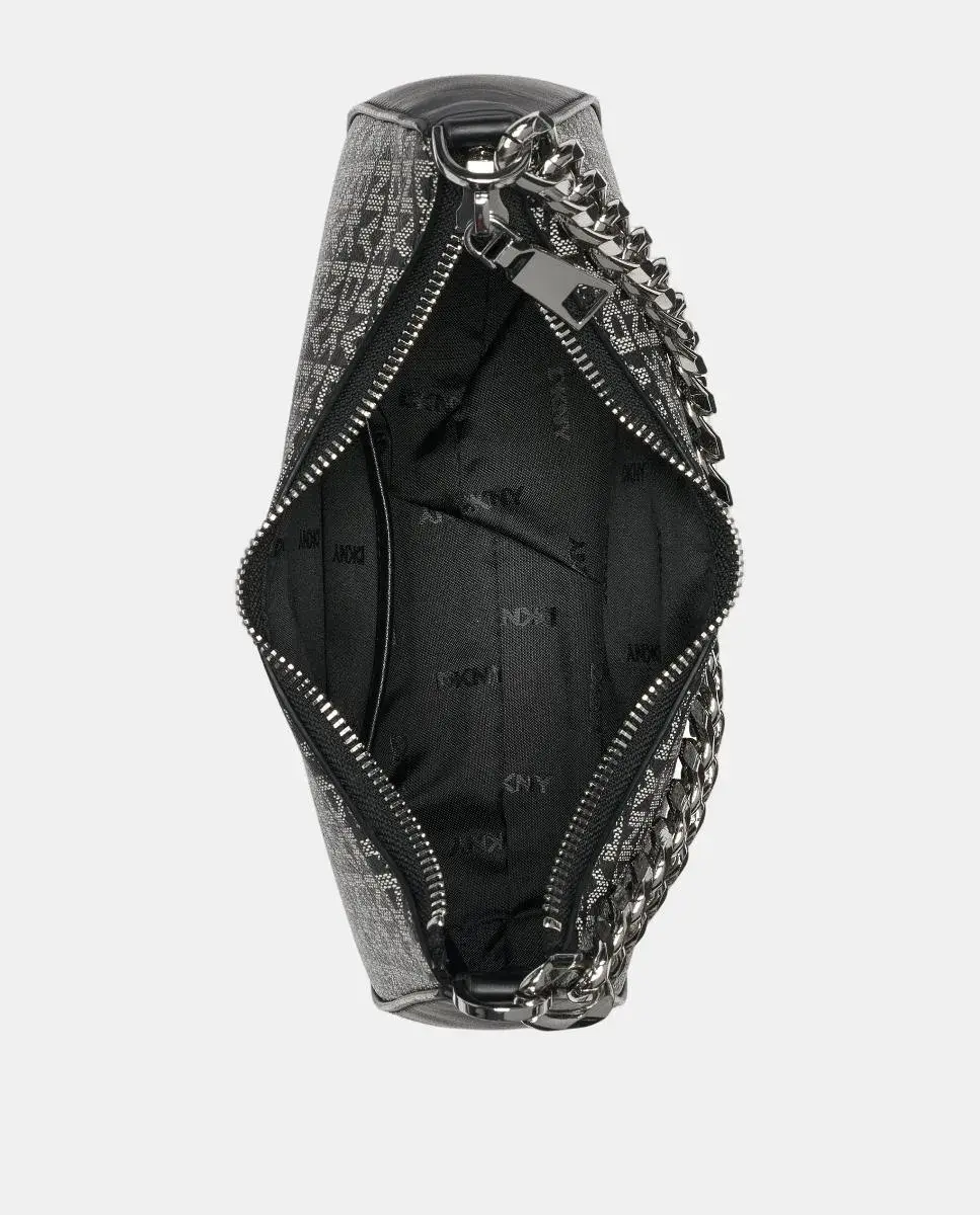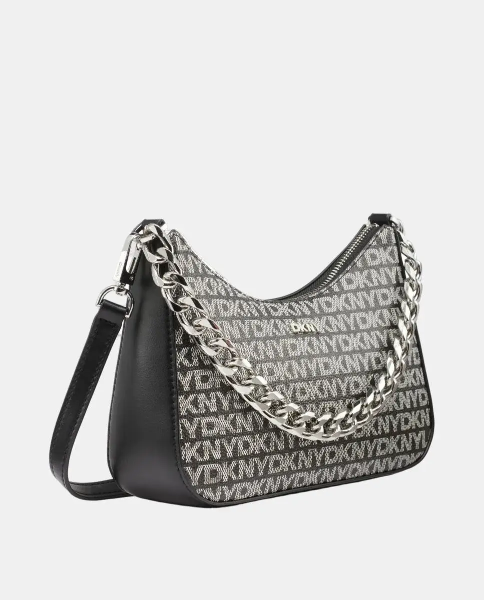 Сумка JENNA с плечевым ремнем и ручкой из цепочки, с монограммным принтом. Застежка на молнии.