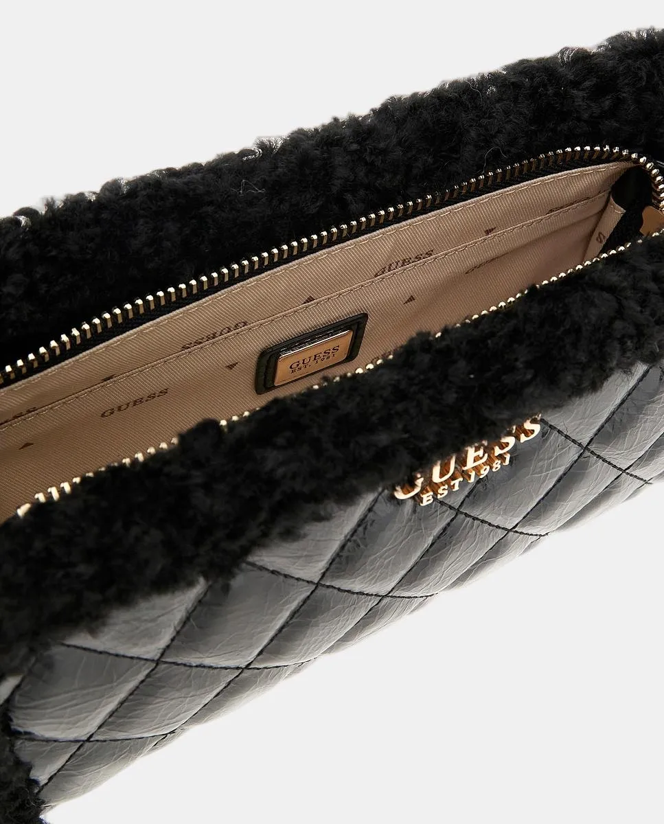 Сумка-модель Кристи из лакированной кожи с подкладкой из овчины, с цепочной ручкой и металлическим логотипом Guess 1981 в золотом тоне.