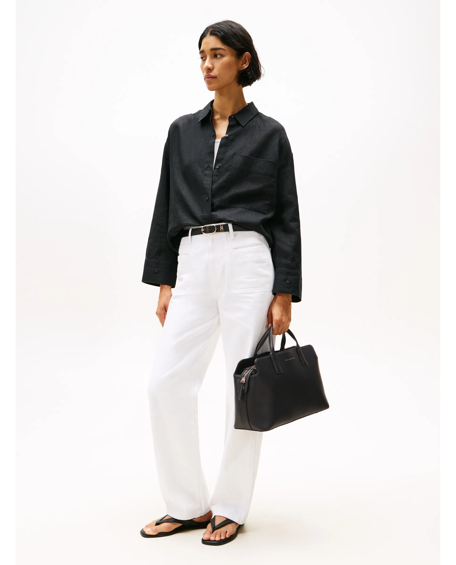 Сумка-слинг для женщин, выполненная из экокожи черного цвета. Дизайн с регулируемым плечевым ремнем и застежкой на молнии. Деталь с логотипом Tommy Hilfiger на передней части.