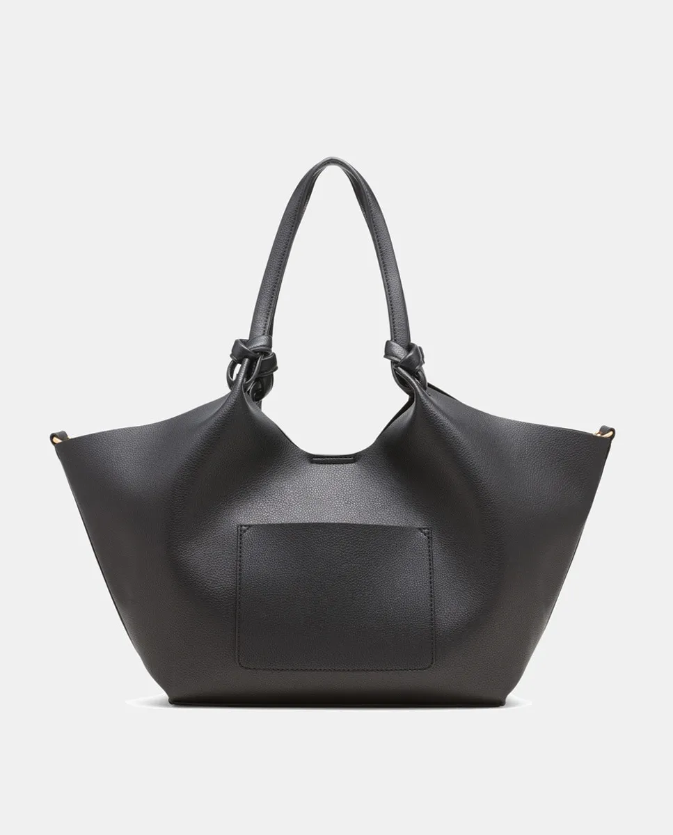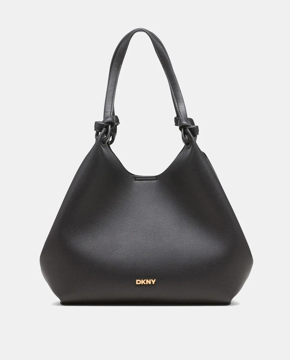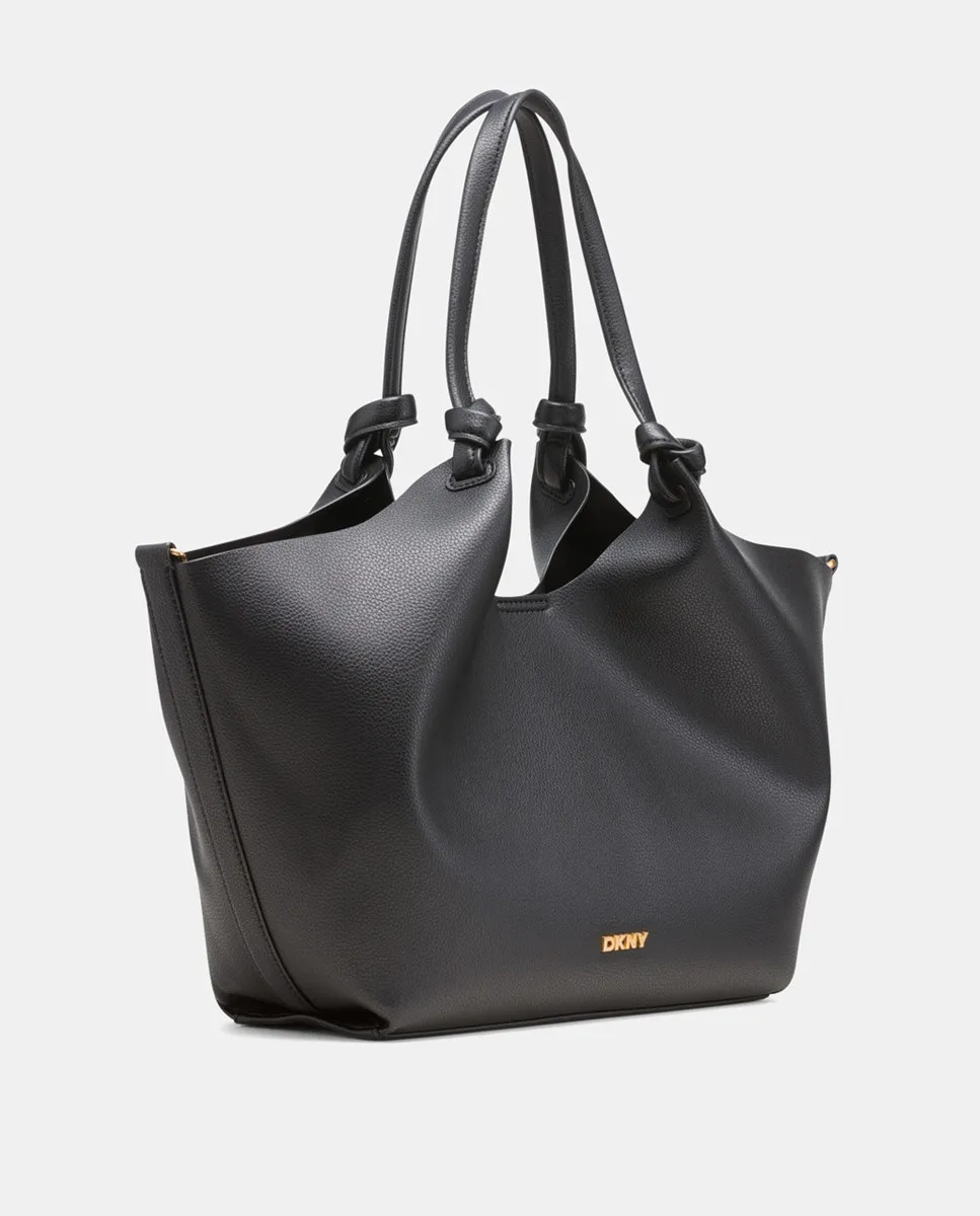 Средняя сумка-шоппер PAULA, которая может трансформироваться и имеет плечевой ремень с узловыми деталями, магнитную кнопку. Металлический логотип DKNY спереди, включает съемный чехол.