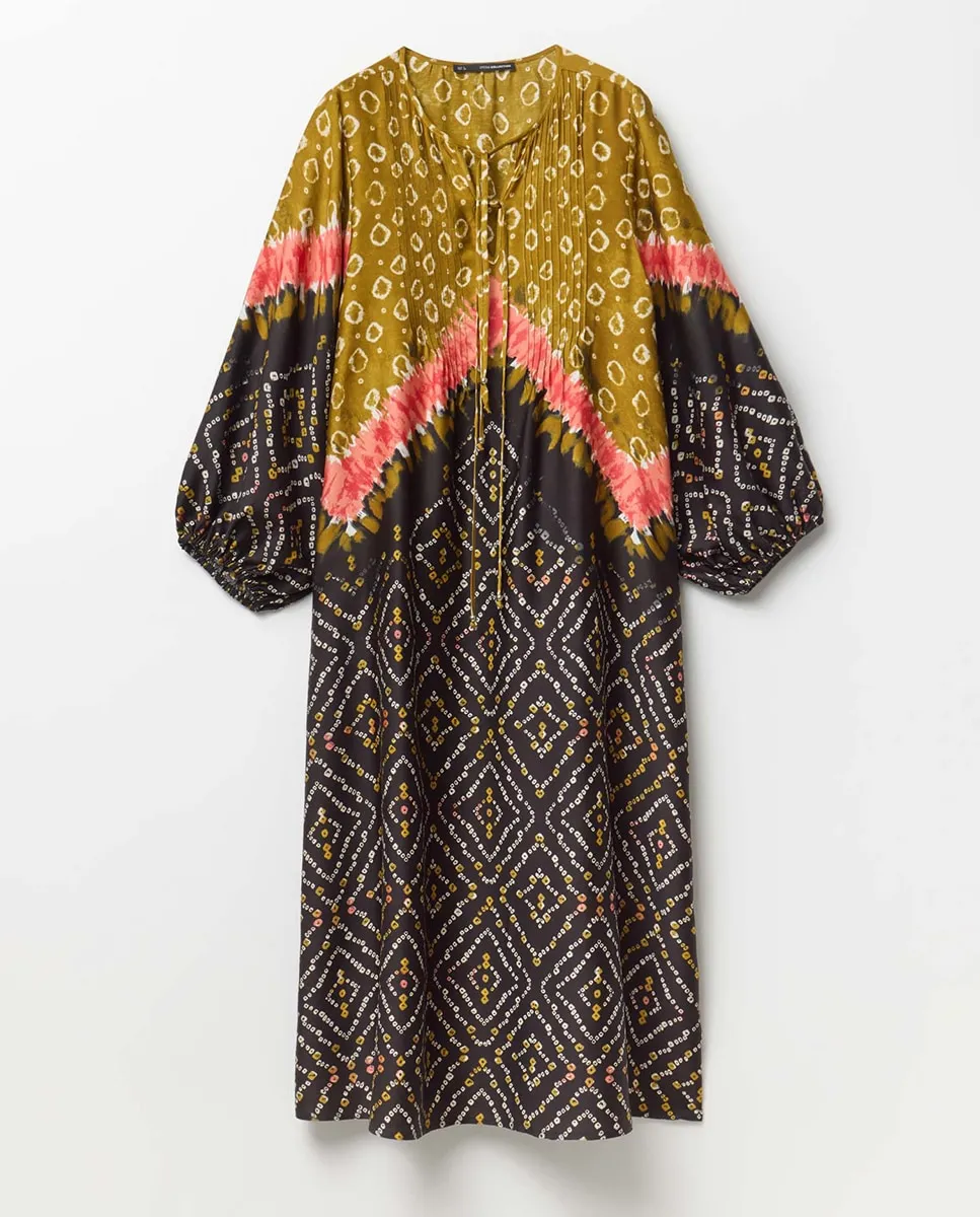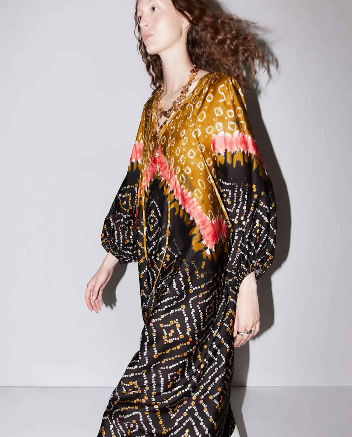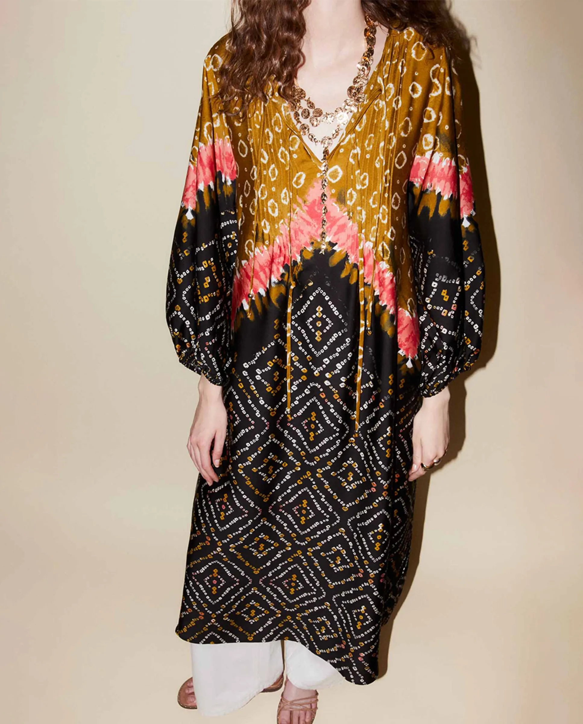 Туника в стиле tiedye. Объемные рукава и V-образный вырез.