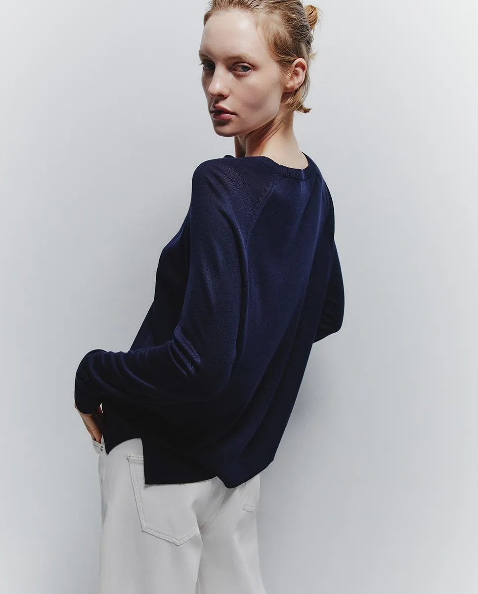 Тонкий джерси с длинным рукавом Sfera, темно-синий