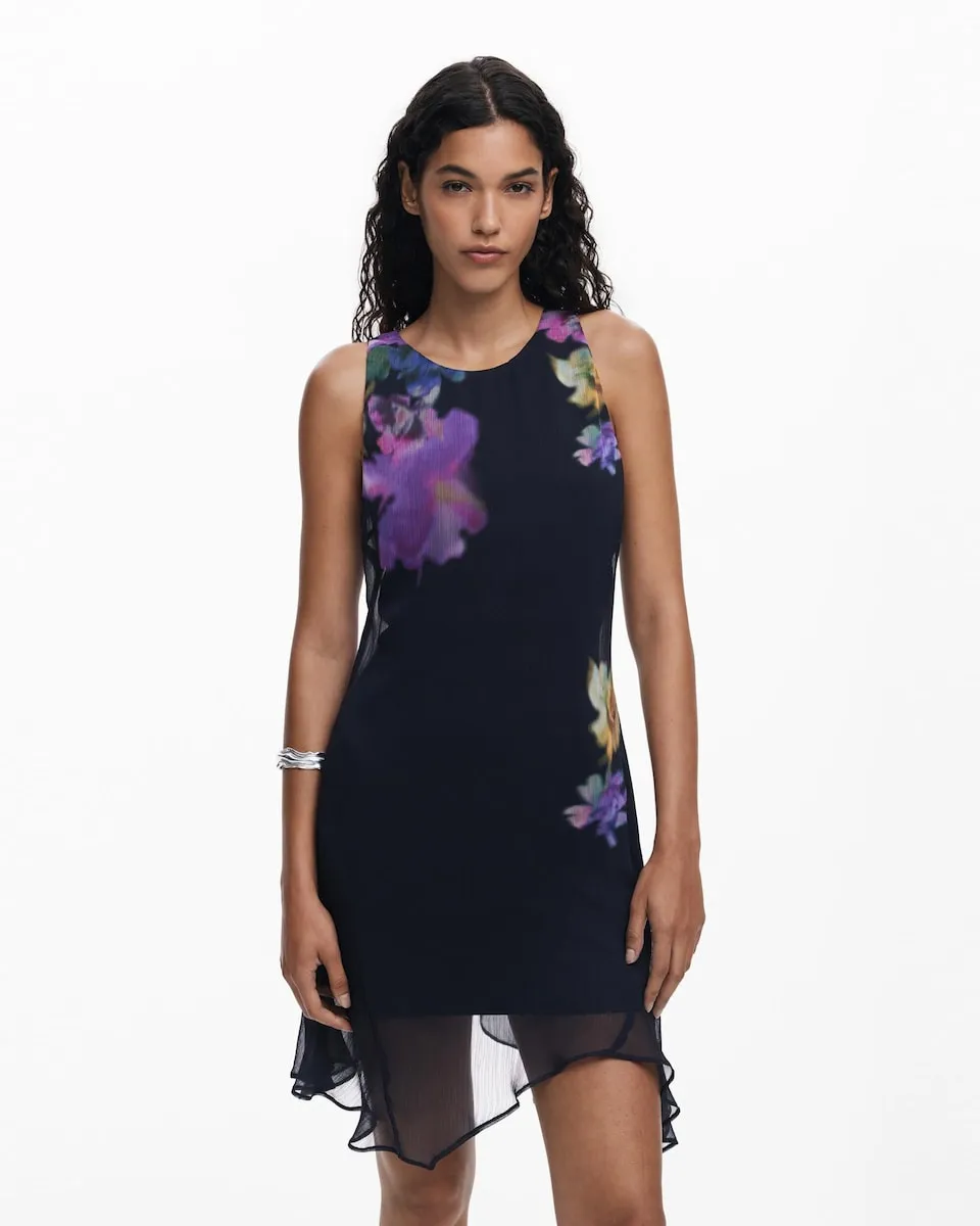 Туника-платье из тюля с цветочным принтом Desigual, черный