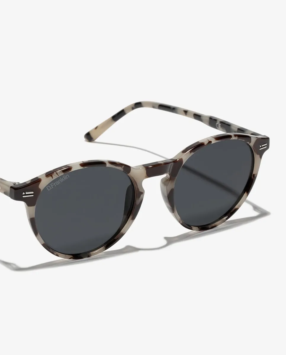 Солнцезащитные очки с круглой оправой. Классическая деталь для самых необычных образов. Наша модель Ultra Light SQ Max оснащена нашими отличительными характеристиками D.Franklin: логотипом, выгравированным на обеих дужках, и нашим эмблемой на правом линзе. Ширина линзы составляет 50 мм, а передняя часть — 137 мм. Длиной боковых дужек составляет 145 мм. Оправка выполнена из материала TR90 с поляризованными линзами. Обеспечивает защиту UV400 CAT.3.