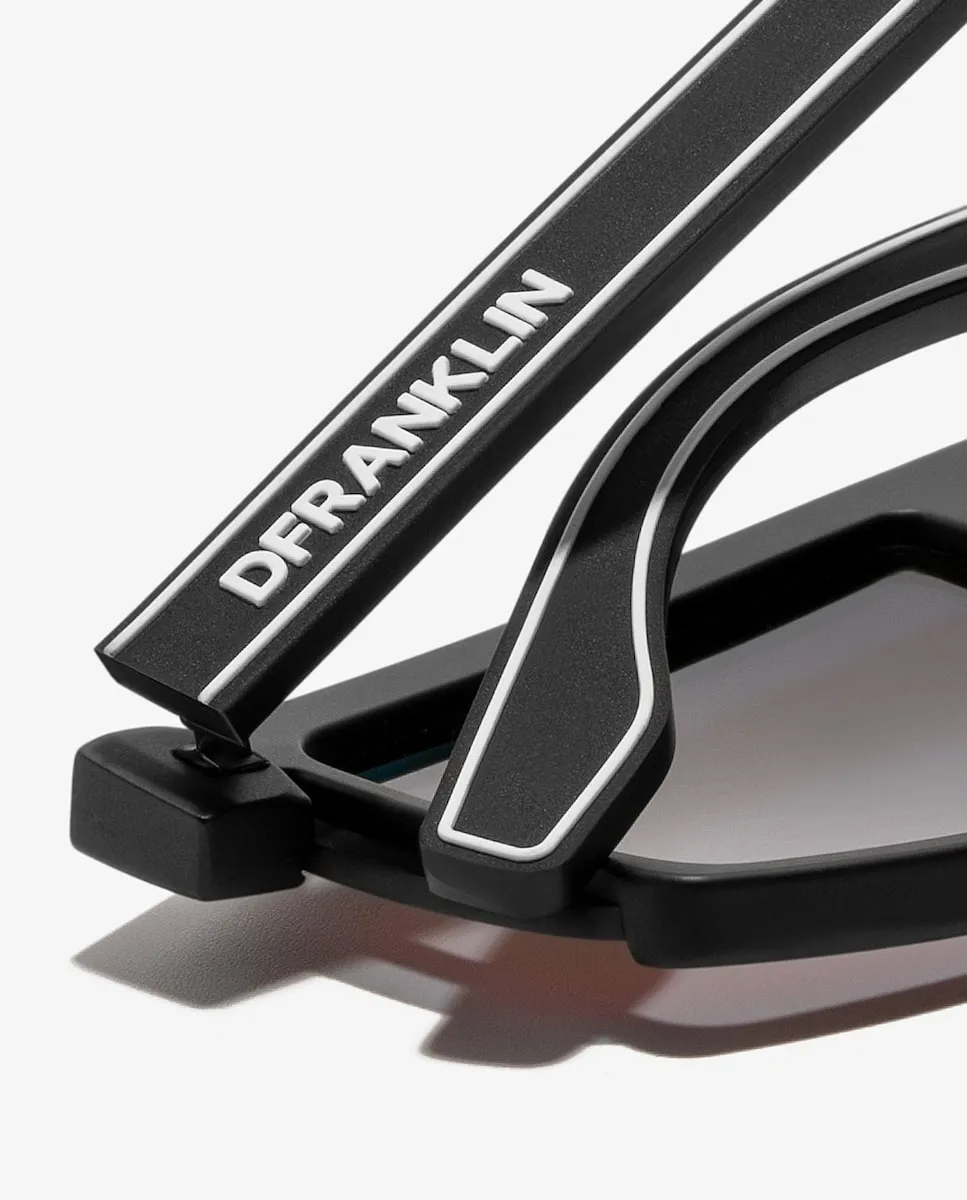 Вдохновленные скоростью высокого性能. Мы сочетали суть D.Franklin в аэродинамическом дизайне со спортивным характером. Созданы для преодоления установленных границ с их бесконечной рамкой прямоугольной эстетики. Унисекс солнечные очки, разработанные для неостановимого движения. Их поликарбонатные линзы и оправа подчеркивают уникальность этой модели. Они имеют наши отличительные детали D.Franklin: логотип, выгравированный на дужках, и эмблему на правой линзе. С шириной линзы 65,5 мм и шириной фронтальной рамы 152 мм, эти очки подходят большинству лиц. Дужки имеют длину 150 мм. Кроме того, этот дизайн имеет рамку из TR90, устойчива к ударам. Ультрафиолетовая защита UV 400 кат. 3.