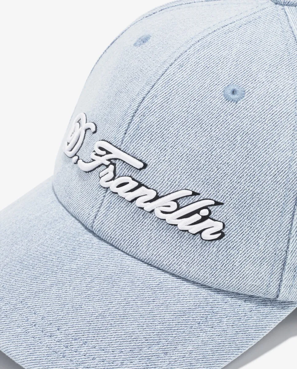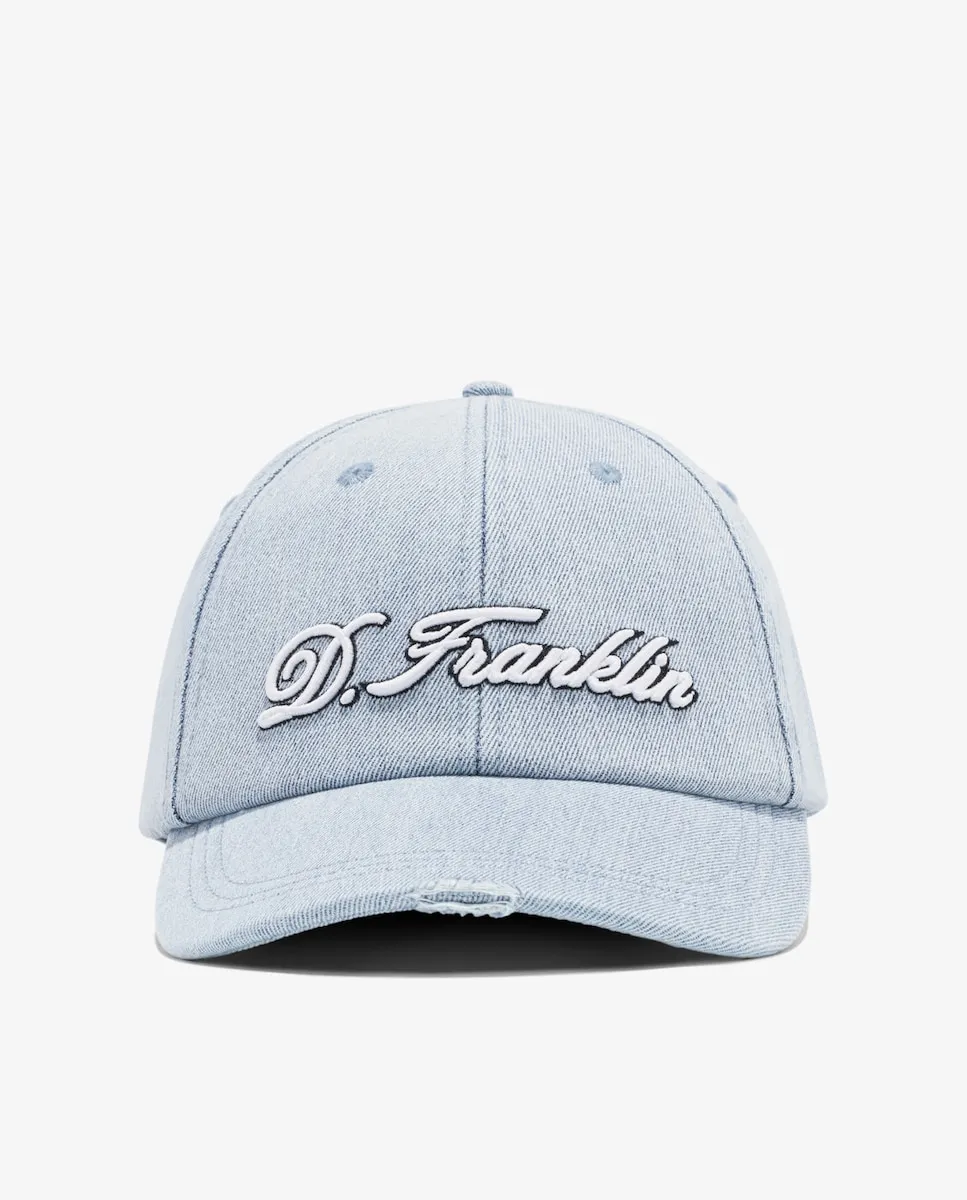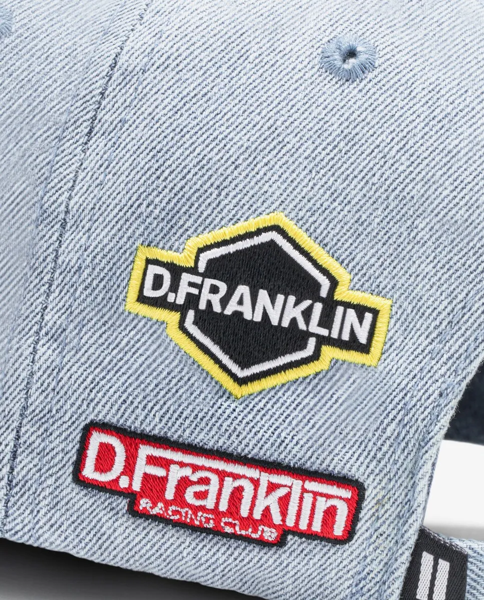 Кепка D.Franklin с изогнутым козырьком, вдохновленная сутью стрит-стиля. Аксессуар для доминирования на улицах. Кепка изготовлена из тканевого материала с эффектом денима. Она имеет эмблему D.Franklin спереди. Кроме того, представлено регулировочное устройство snapback с металлической пряжкой на задней части.