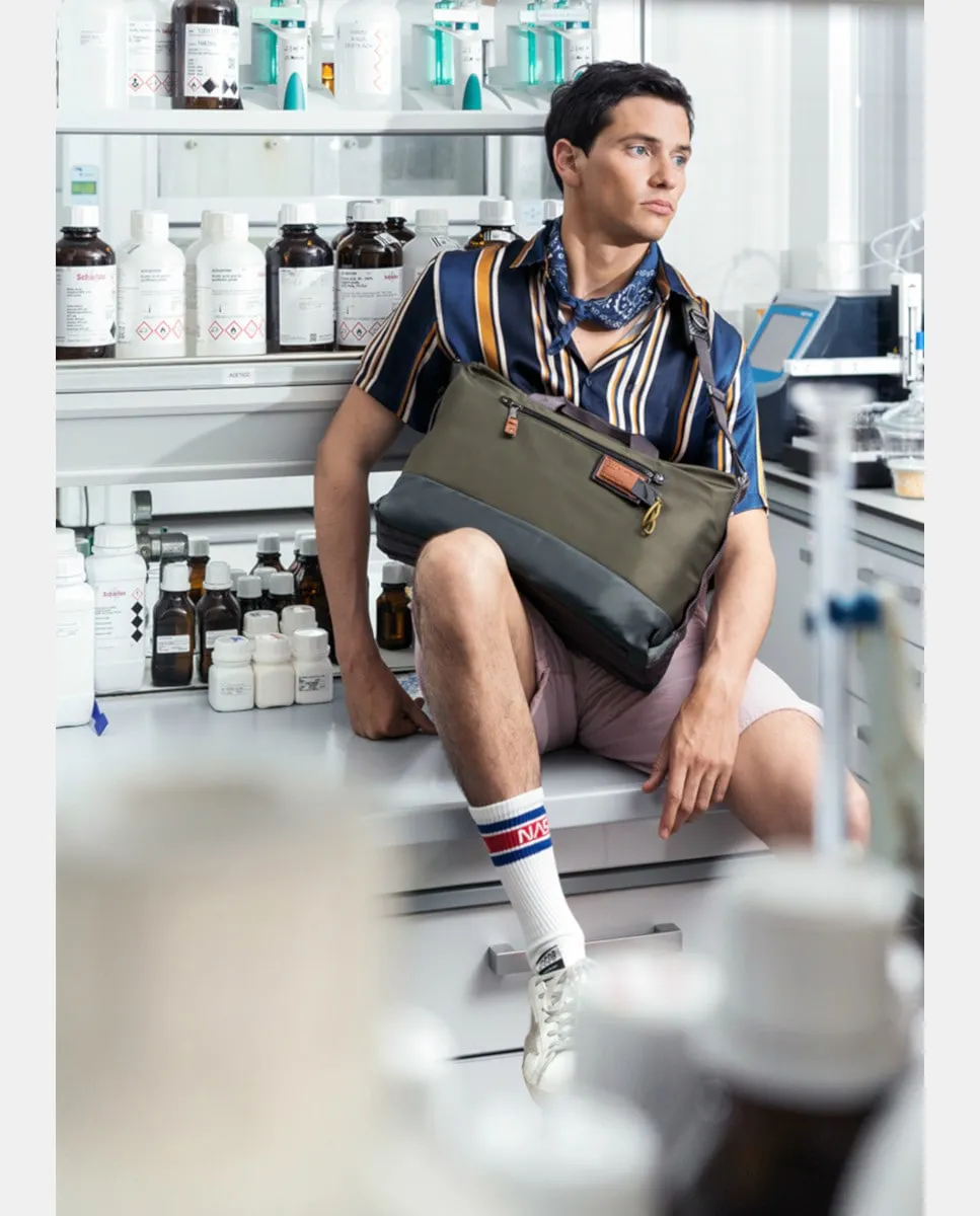 Сумка-мессенджер, изготовленная из прочного и эластичного полиэстера. Включает в себя мягкий отсек для ноутбука размером 13,3 дюйма и карман для карт. Размеры: 26 см (высота) x 40 см (длина) x 10 см (ширина)