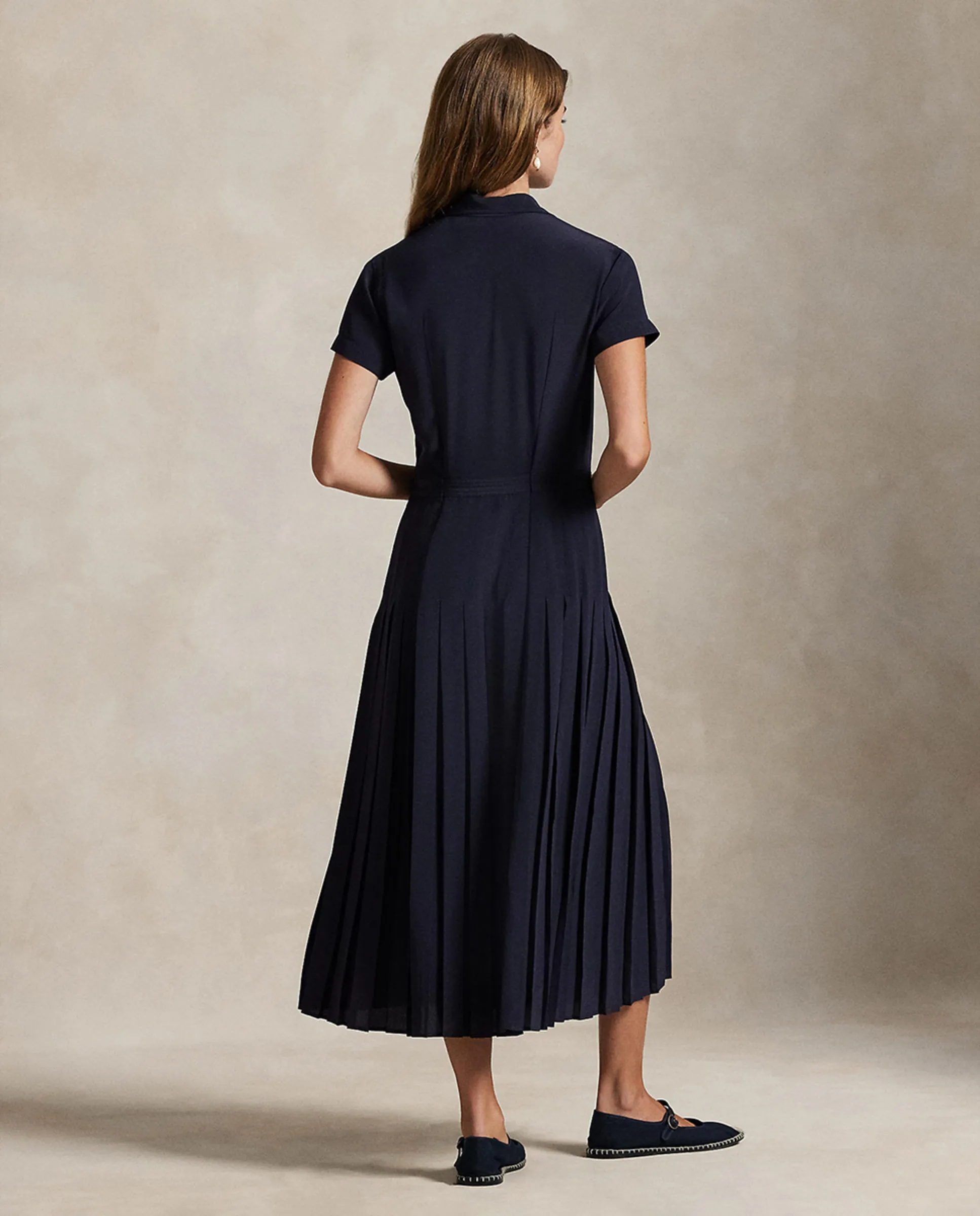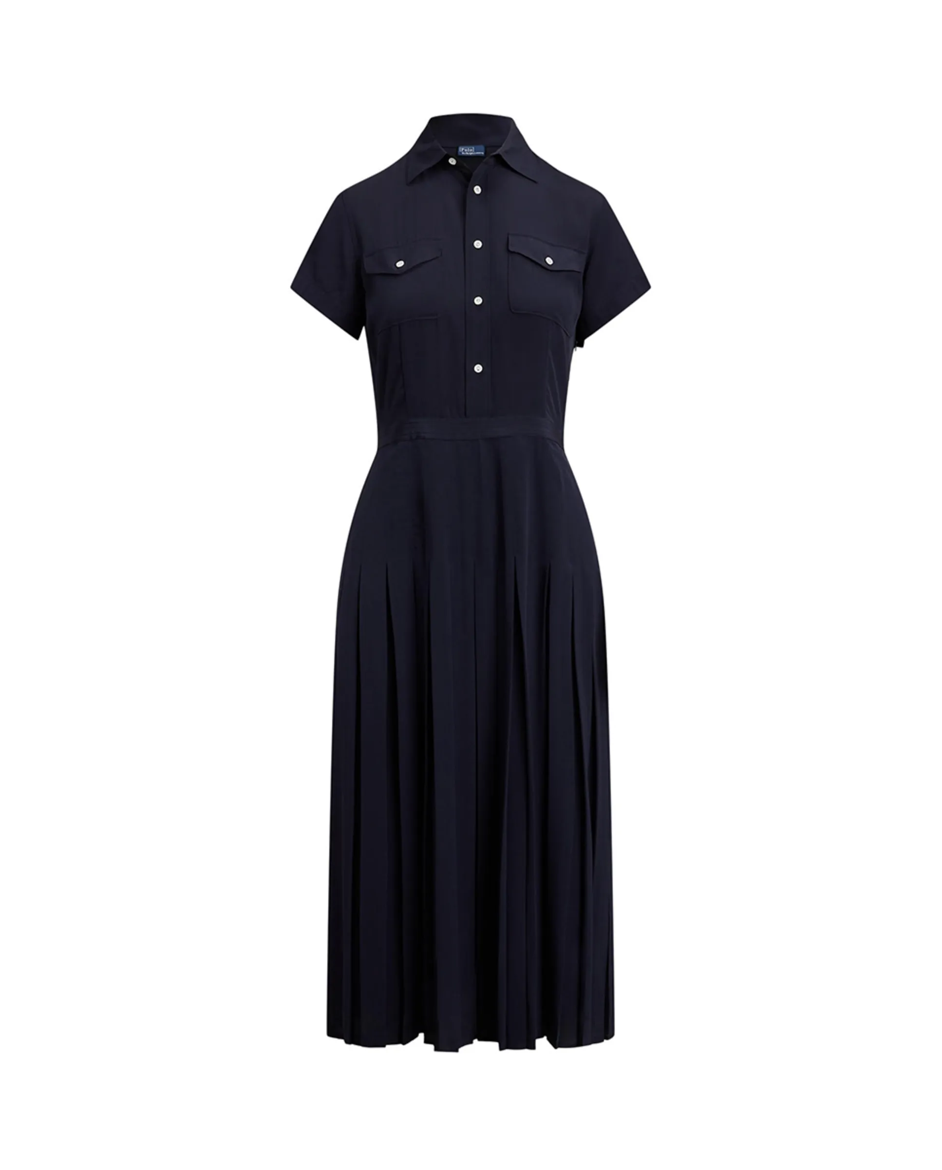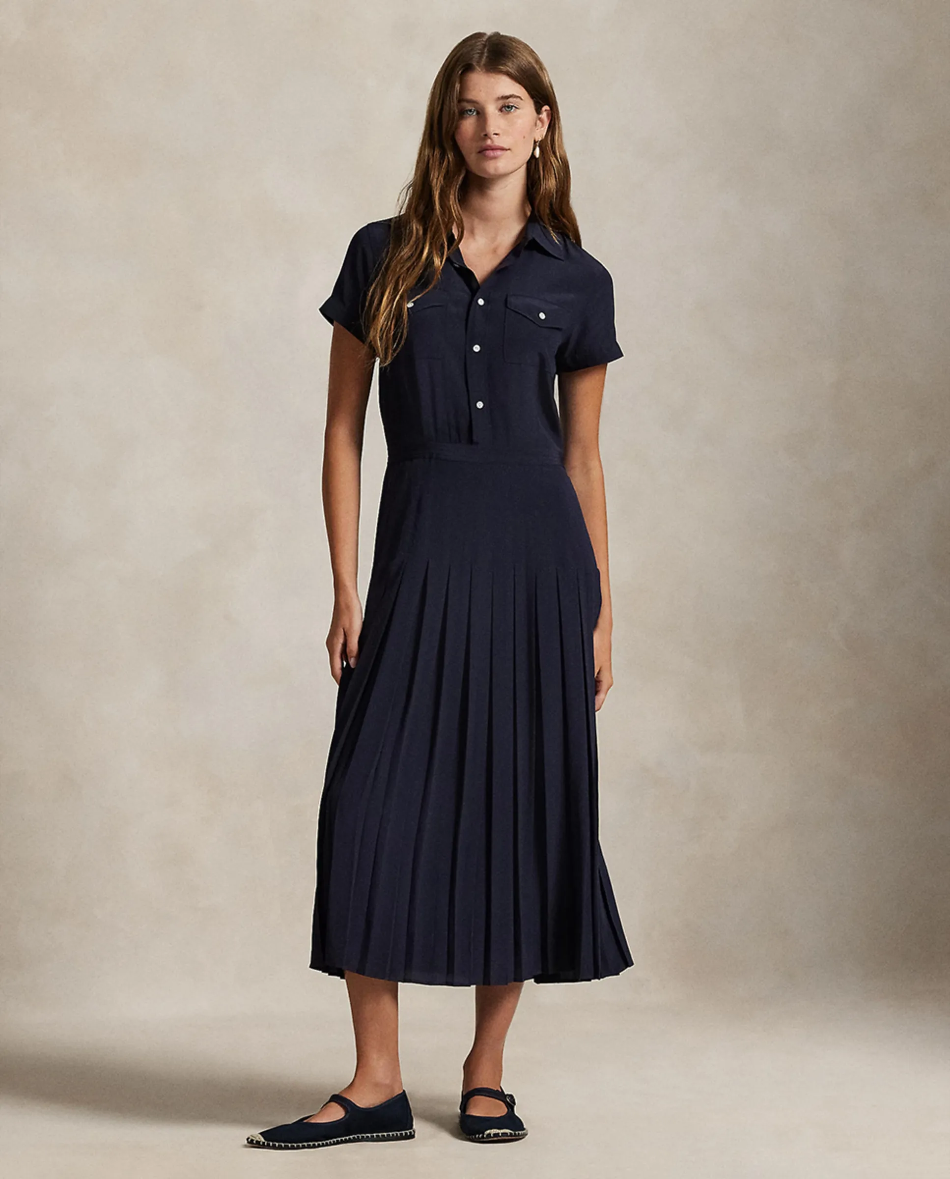 Шелковое платье с плиссированной юбкой Polo Ralph Lauren, темно-синий