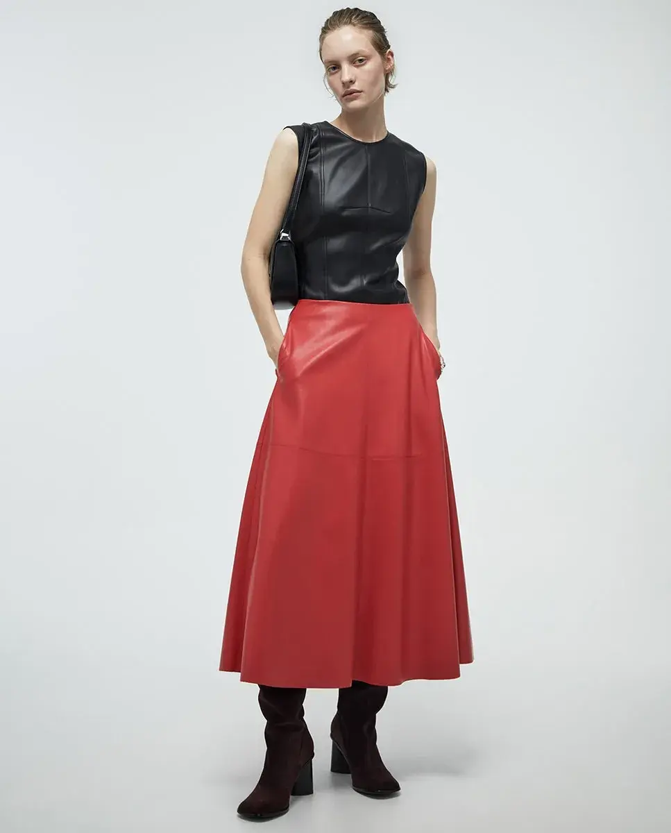 Юбка с эффектом кожи Sfera, красный 7 352₽