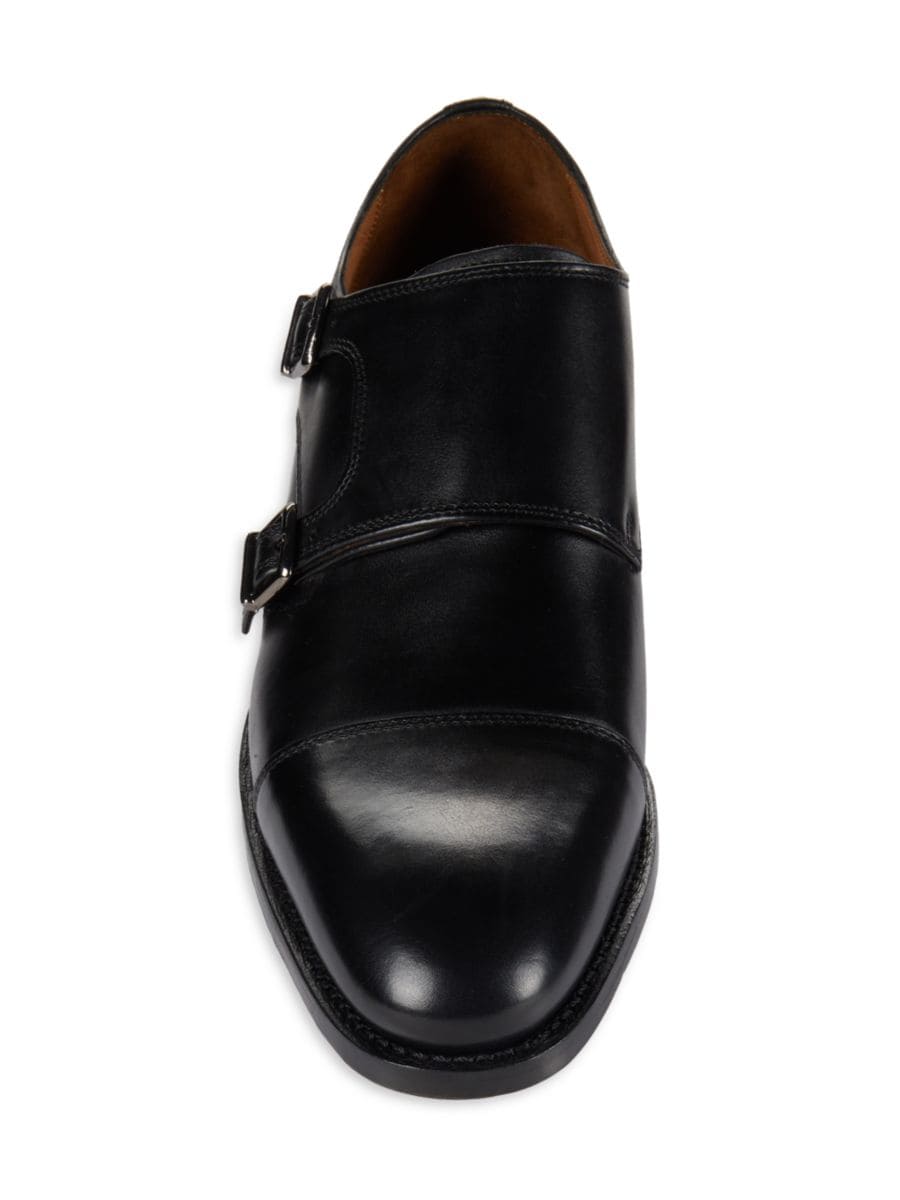 Туфли Allen Edmonds Pierce изготовлены из кожи и имеют конструкцию с двумя ремешками-монками и закрытым носком.