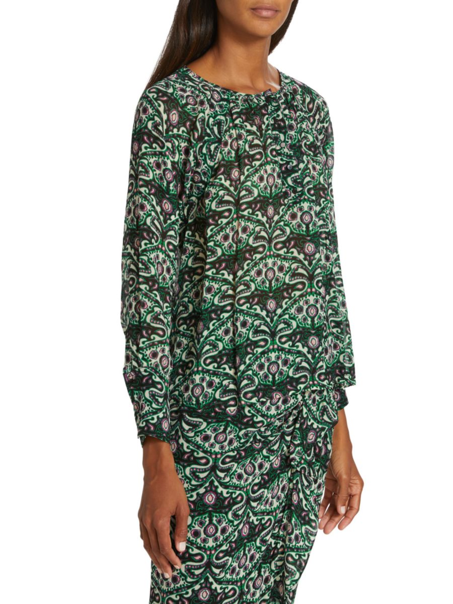 Блузка Fel от BA&SH с привлекательным принтом в стиле пейсли, длинными рукавами и пуговицами спереди.