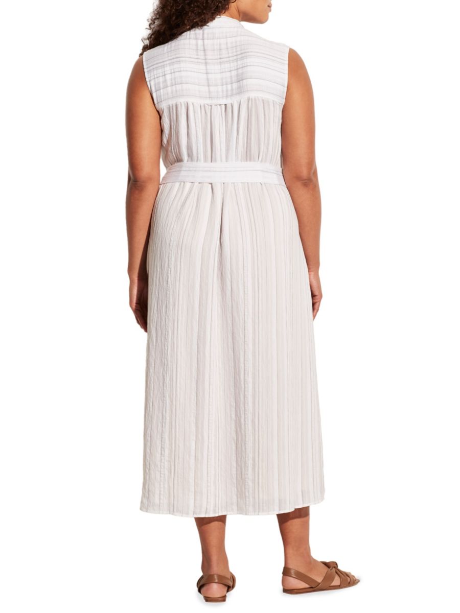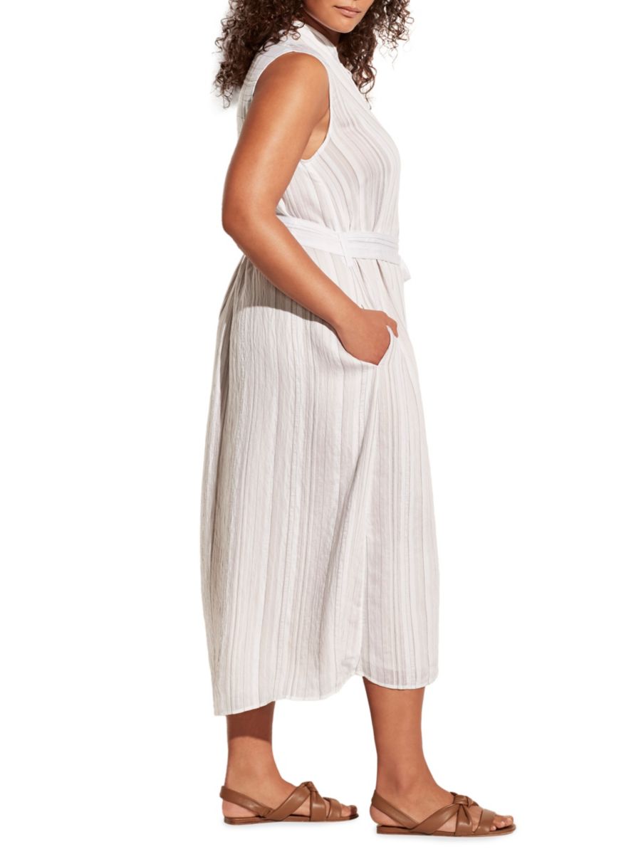 Платье-рубашка миди в полоску с драпировкой Vince, цвет Optic White