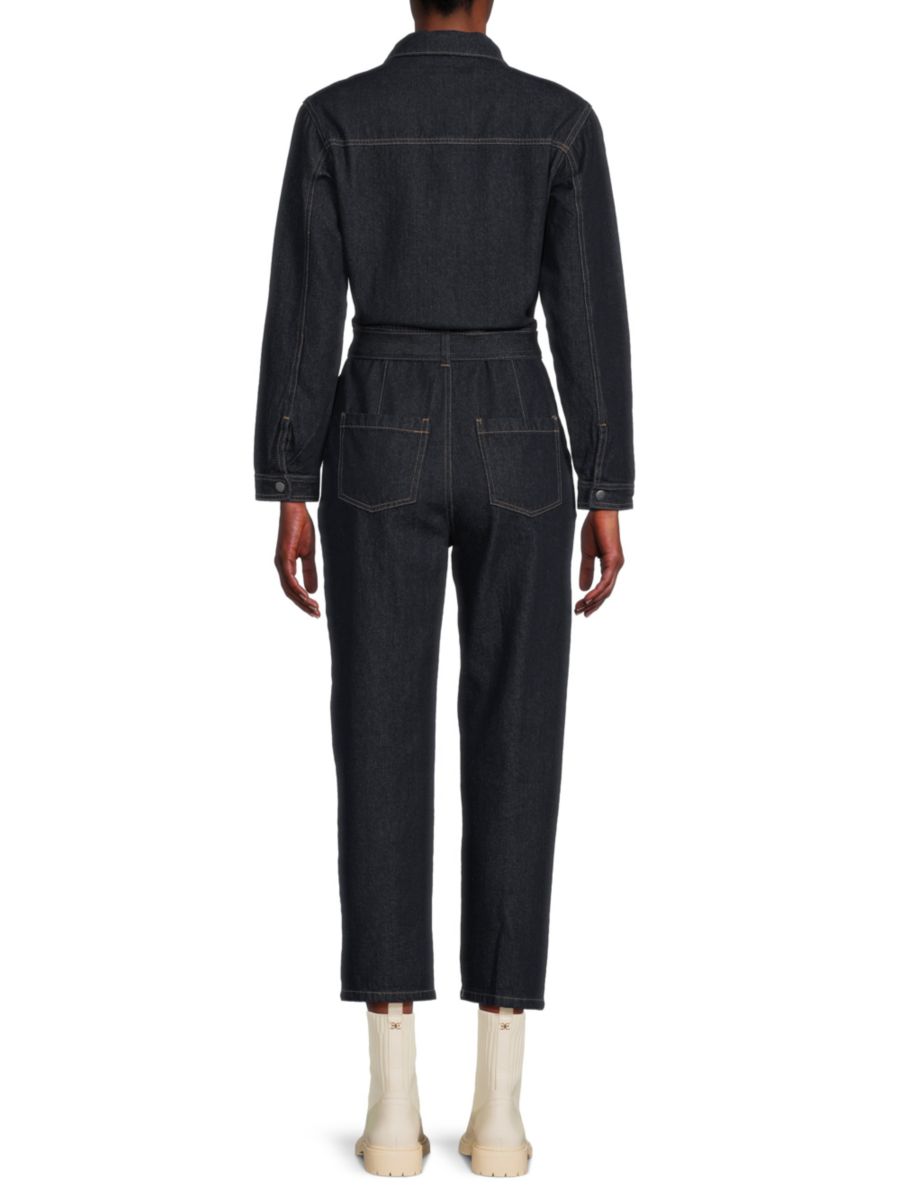 Этот комбинезон Lea & Viola сшит из джинсовой ткани и имеет шесть карманов.