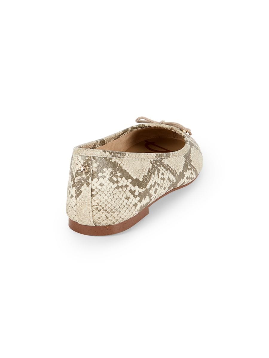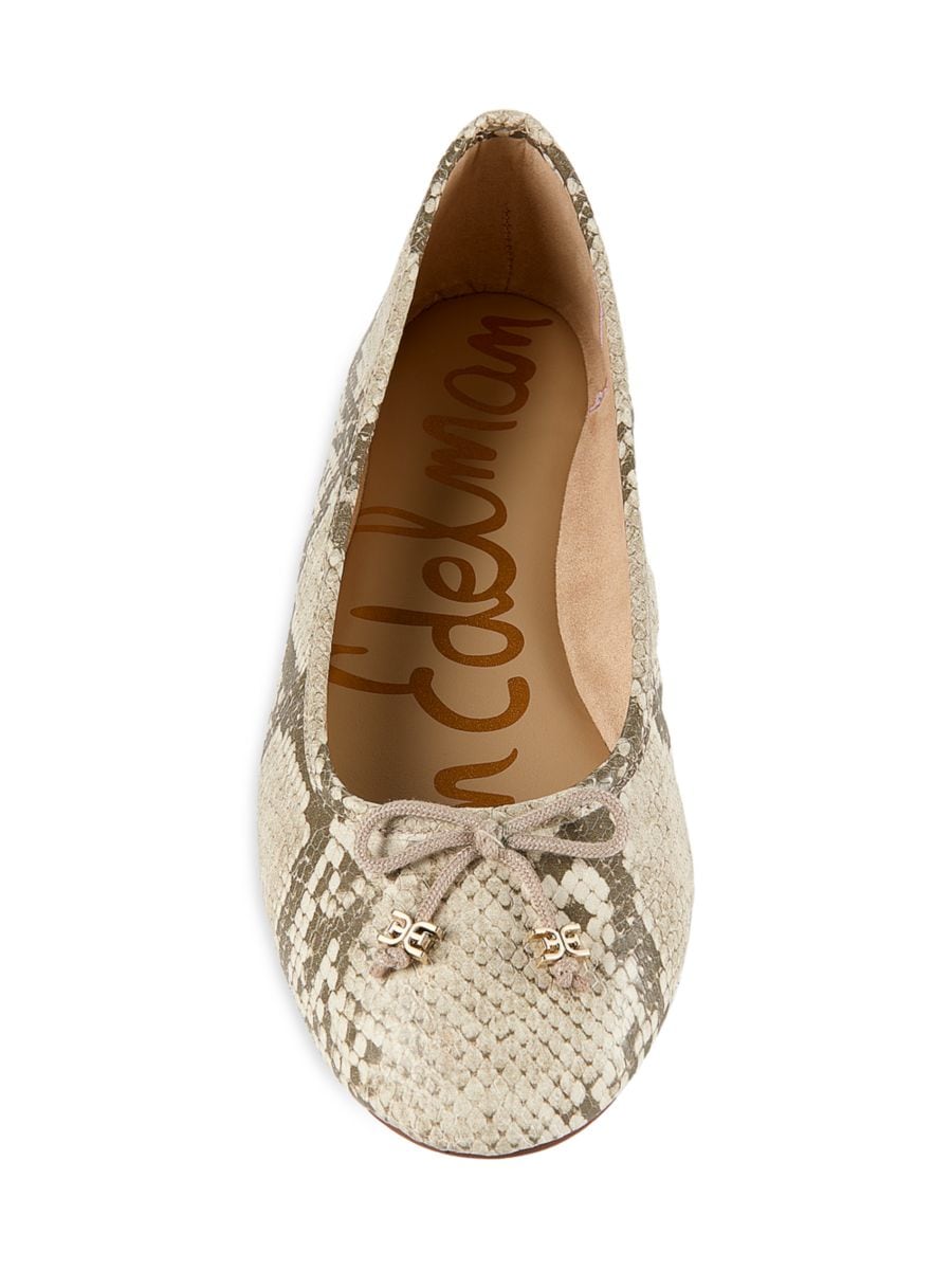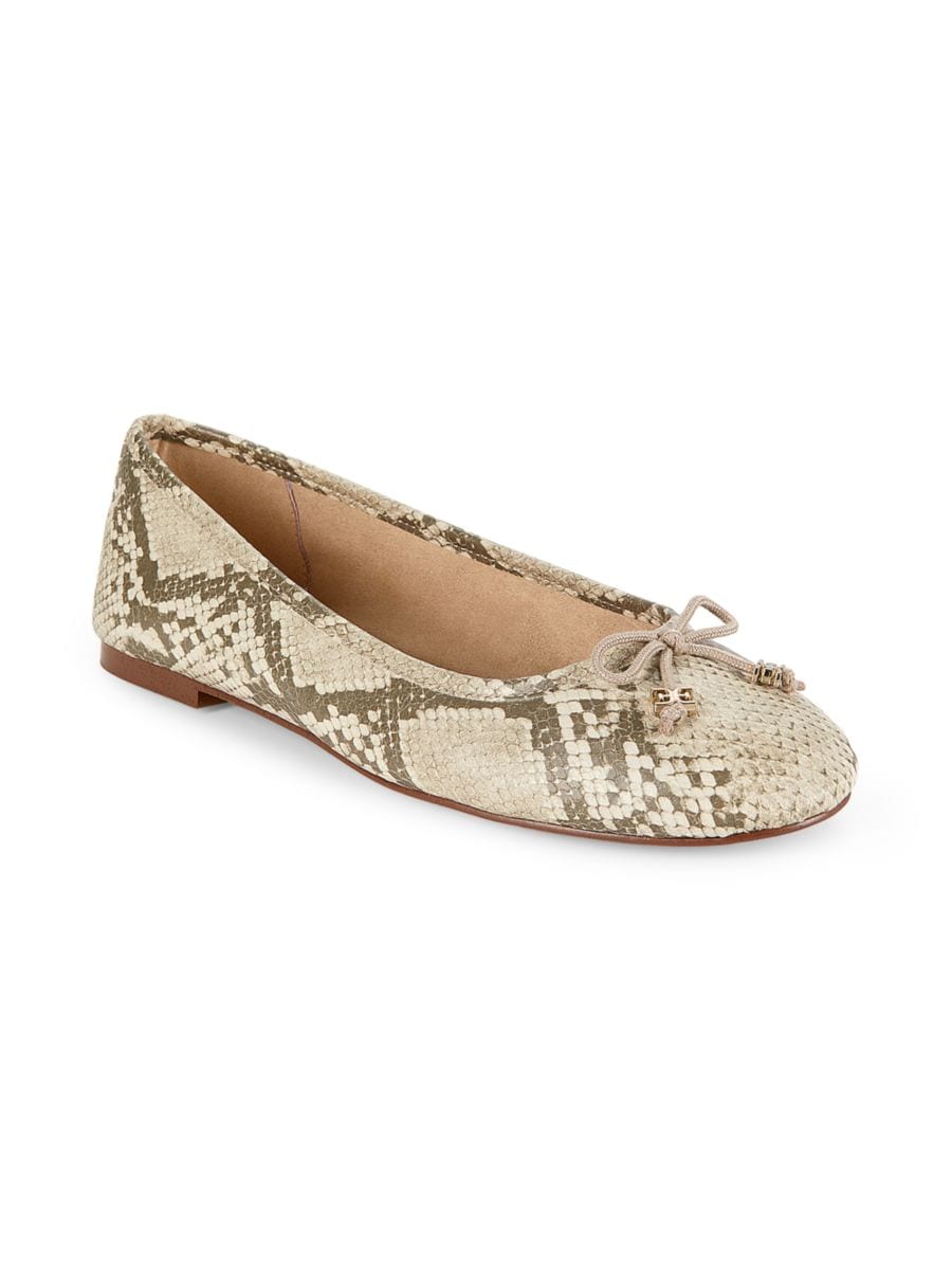 Эти балетки с тиснением под питона от Сэма Эдельмана имеют круглый носок и легко надеваются, а также имеют легкую амортизирующую стельку для удобства в течение всего дня.