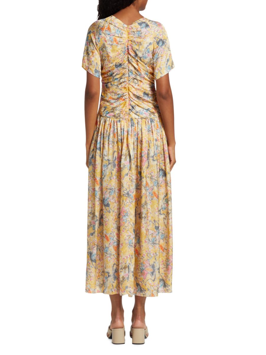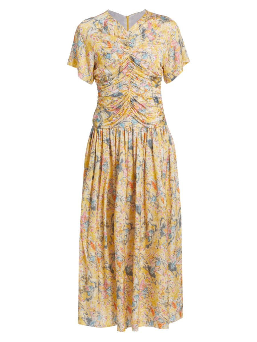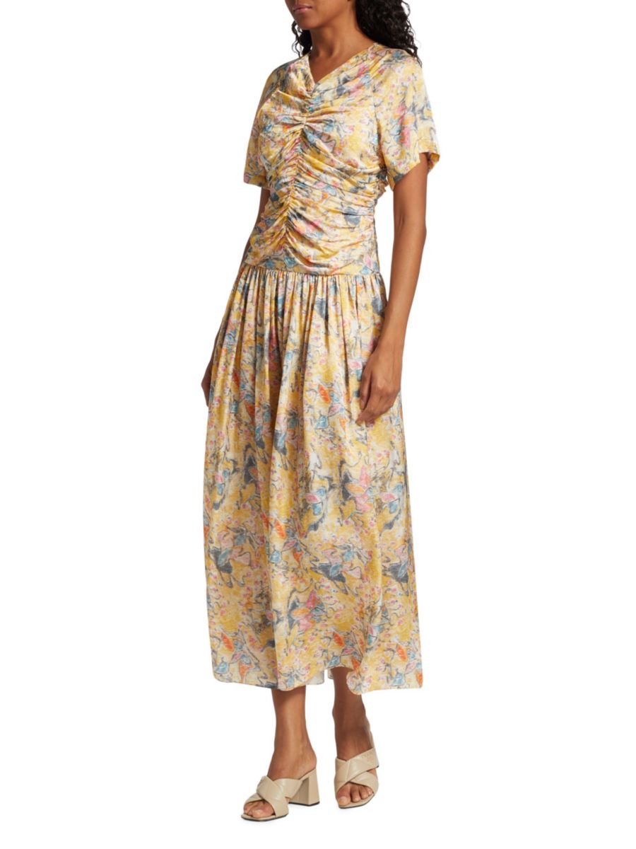 Платье миди с цветочным принтом и сборками Rosetta Getty, цвет Lemon 22 910₽