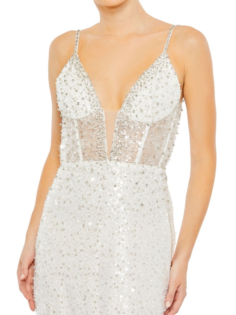 Платье-корсет с глубоким вырезом и отделкой бисером Mac Duggal, белый