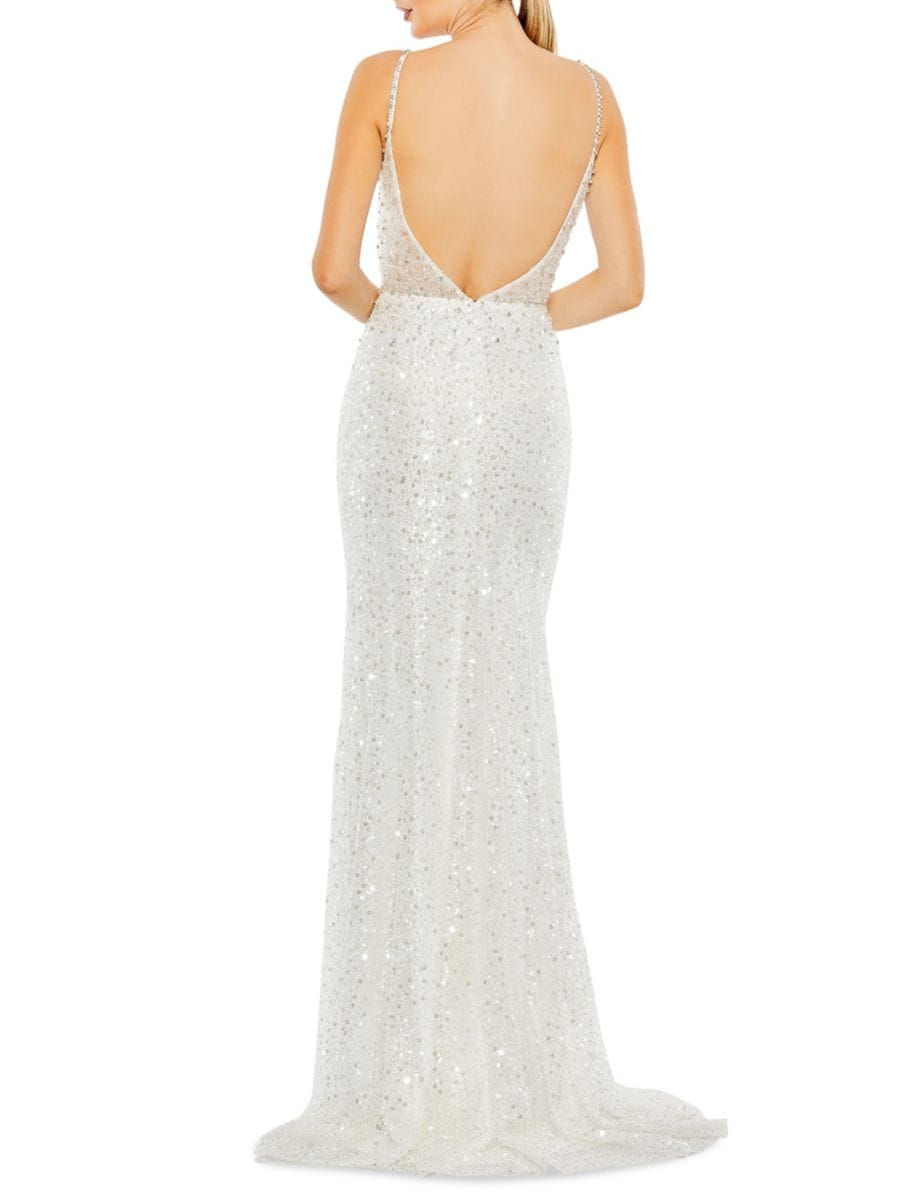 Платье-корсет с глубоким вырезом и отделкой бисером Mac Duggal, белый 44 253₽
