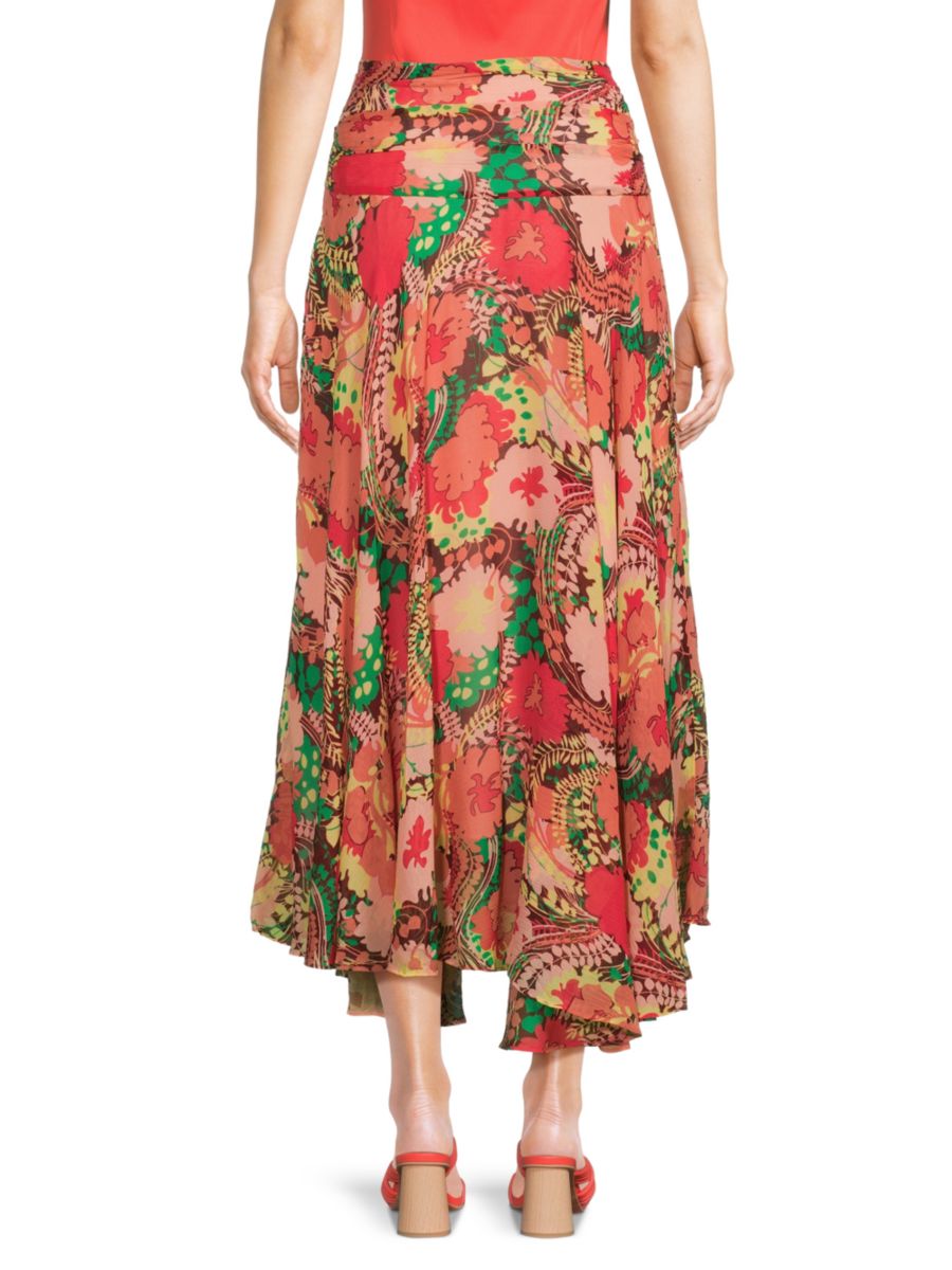 Юбка миди Ariella от ALC демонстрирует перекрученную отделку на талии, яркие принты и выполнена из роскошного шелка.