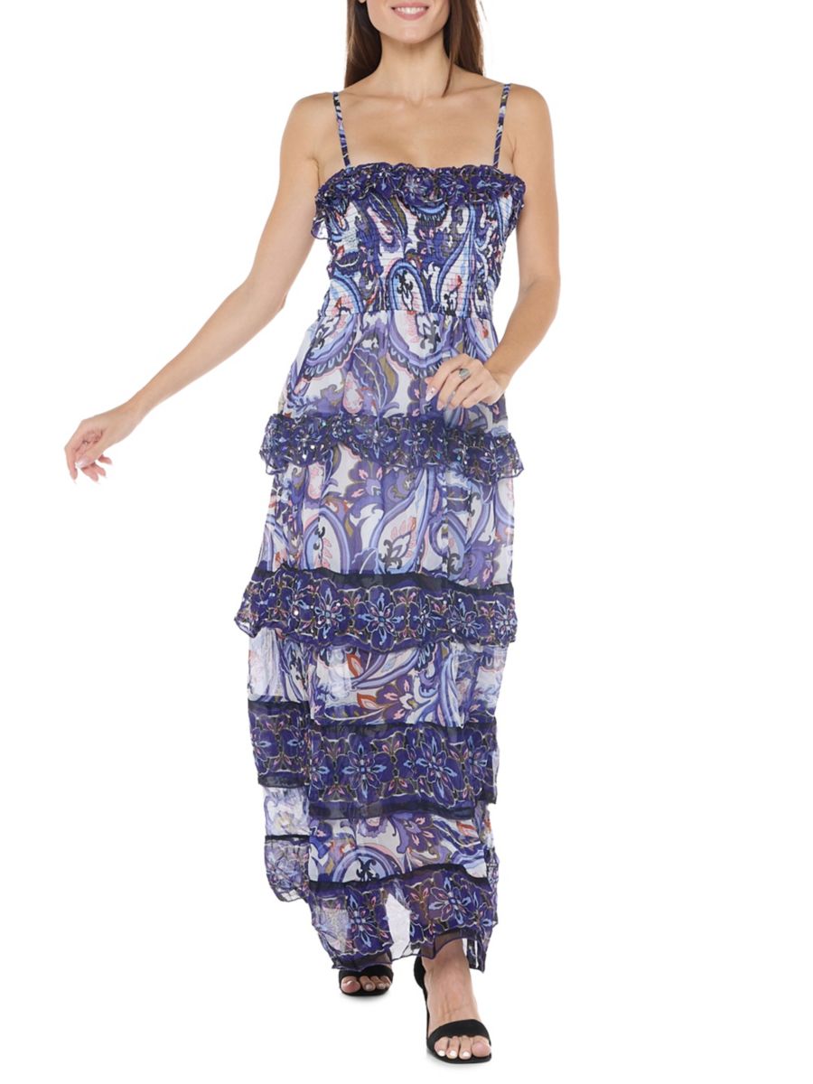 Многоярусное макси-платье с узором пейсли Ranee's, синий