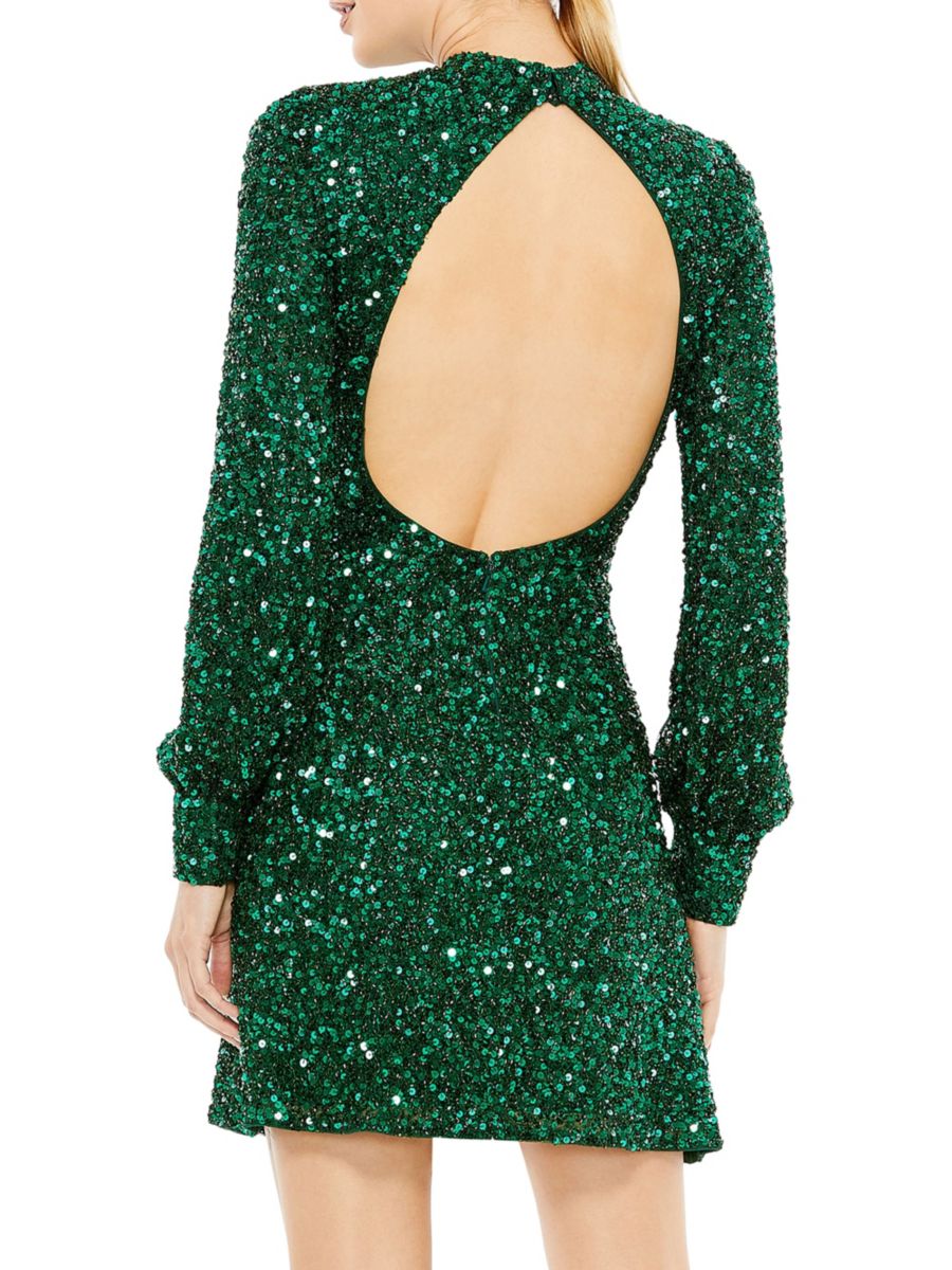Чистый свободный силуэт этого расшитого пайетками платья подчеркивает открытая спина, придавая современный вид классическому образу для вечеринки.