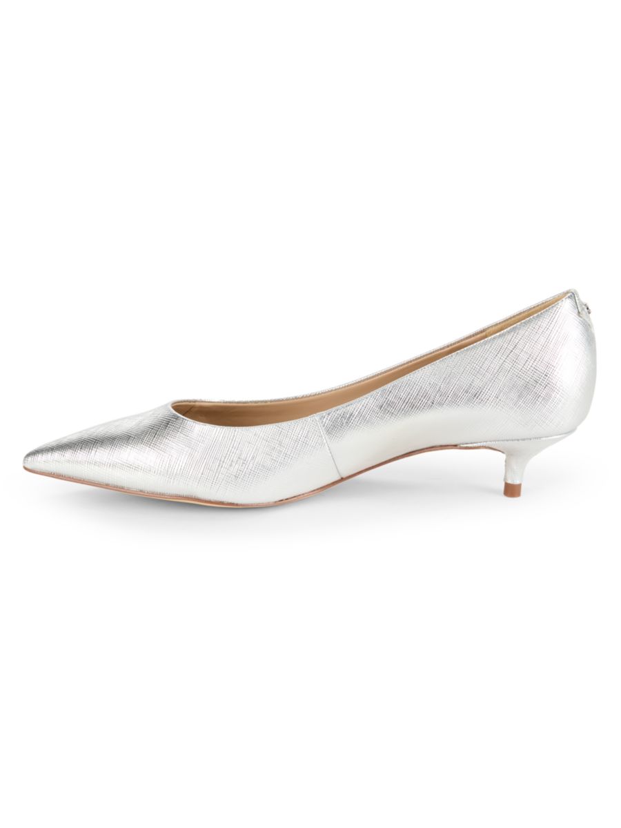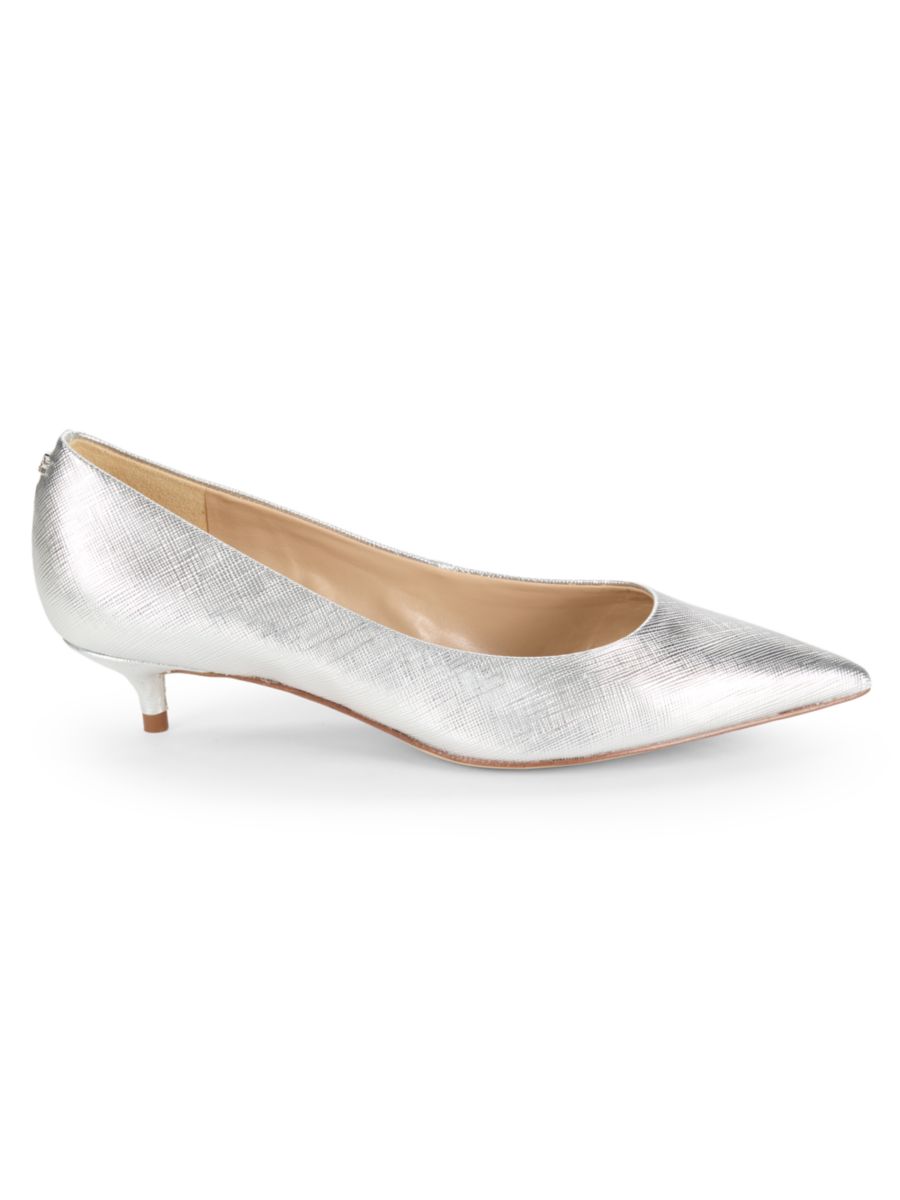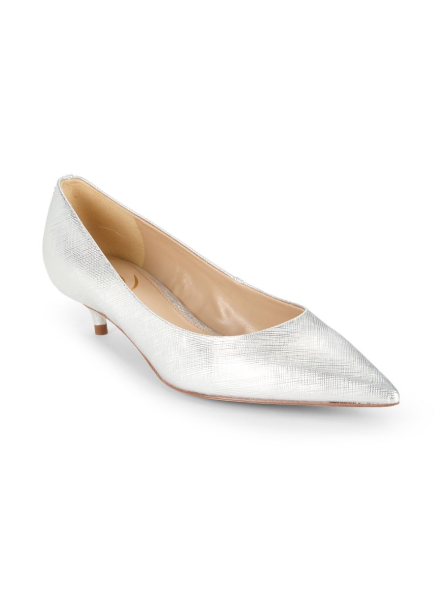 Эти текстурированные металлические туфли-лодочки от Сэма Эдельмана стоят на невысоком каблуке-рюмочке и имеют гладкий заостренный носок для сдержанного блеска.