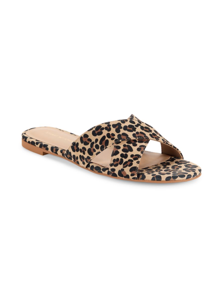 Добавьте стильный штрих к своему образу с этими кожаными сандалиями с леопардовым принтом.