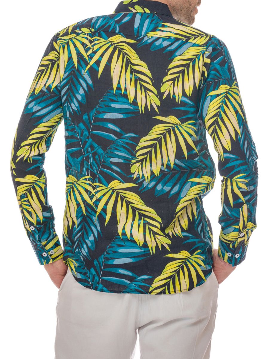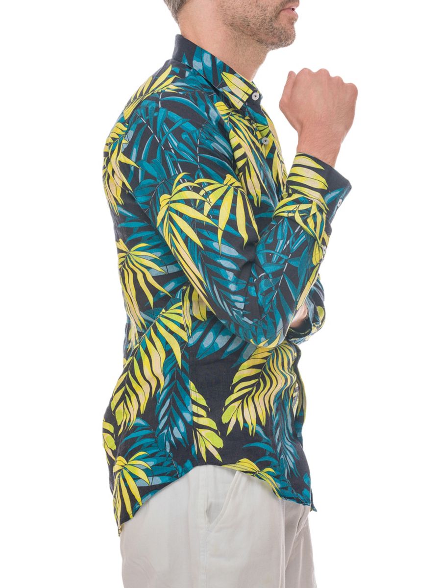 Ranee's освежает повседневную льняную рубашку легким принтом в виде листьев и классическим кроем, включая заостренный воротник, длинную юбку и длинные рукава.