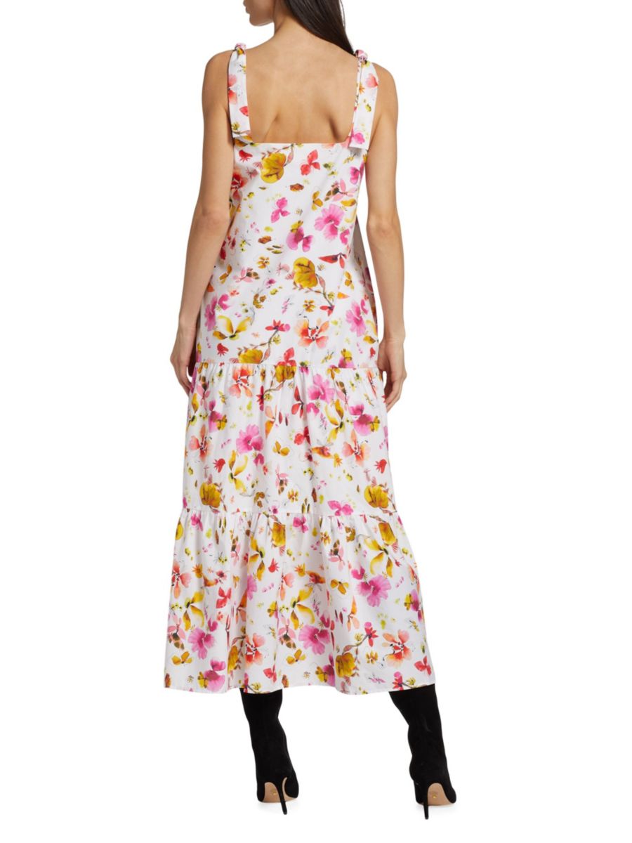 Платье Zuma от Merlette, выполненное из хлопка, украшено красочным цветочным принтом.