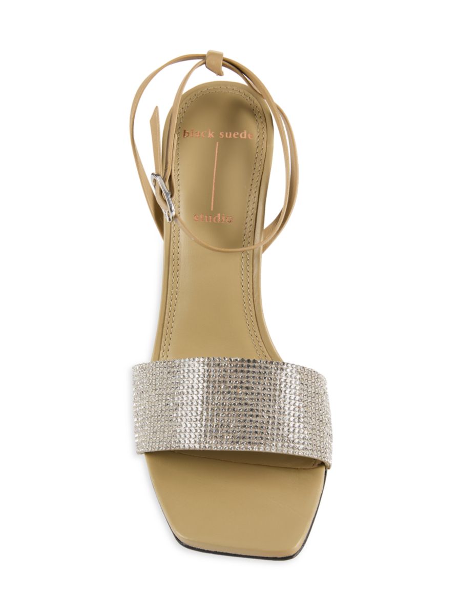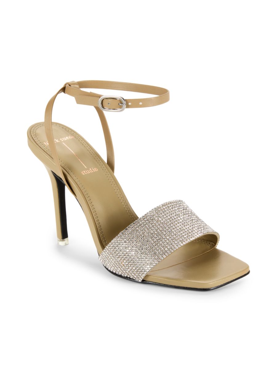 Эти босоножки Black Suede Studio с открытым носком и петлей вокруг щиколотки. Модель выполнена из кожи с декоративной отделкой, включая обтянутый каблук и мягкую стельку.
