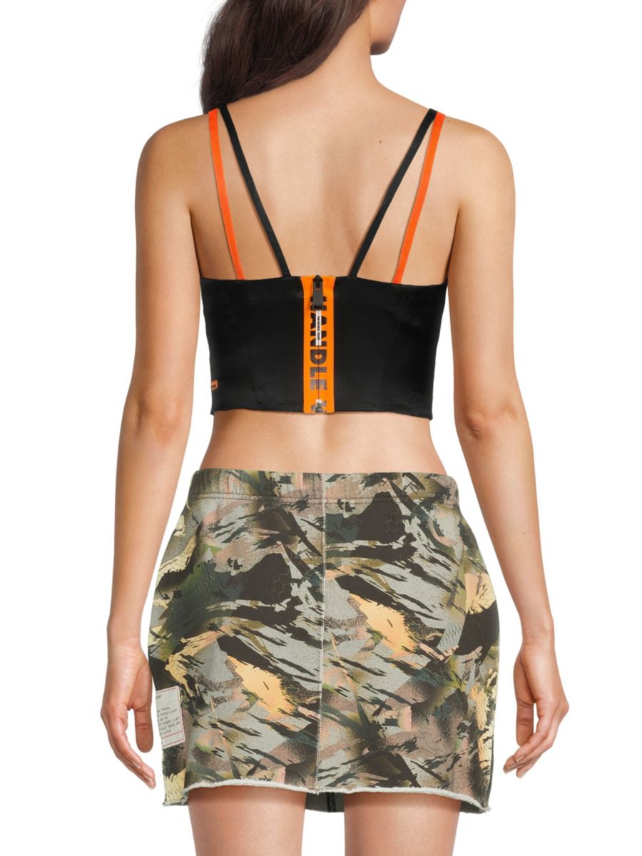 Этот корсет-бюстье от Heron Preston отличается вырезом в форме сердечка и яркой надписью на молнии сзади.