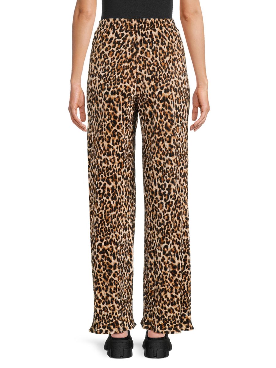 Леопардовый рисунок в тон придает эффектную фактуру этим легким широким брюкам от Renee C., выполненным из плиссированной ткани с эластичной талией.