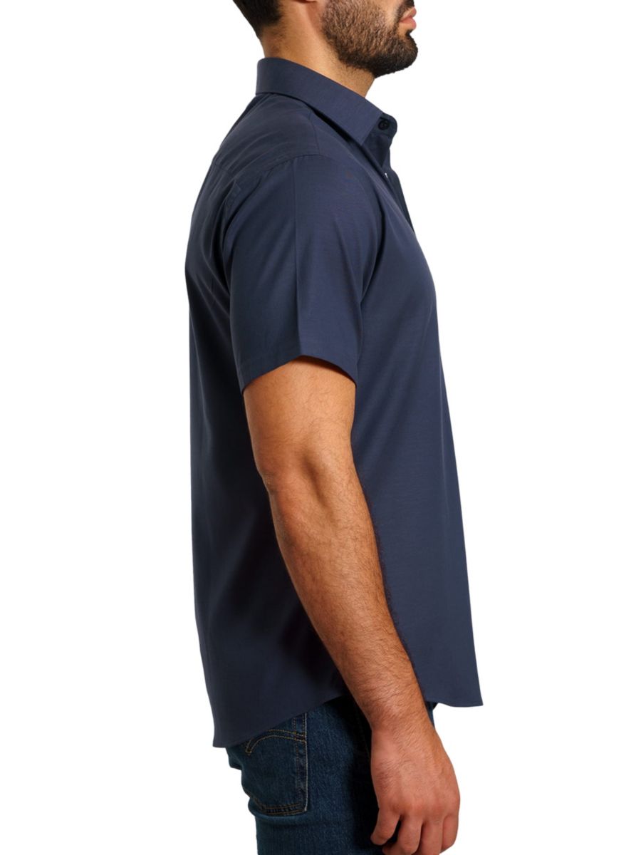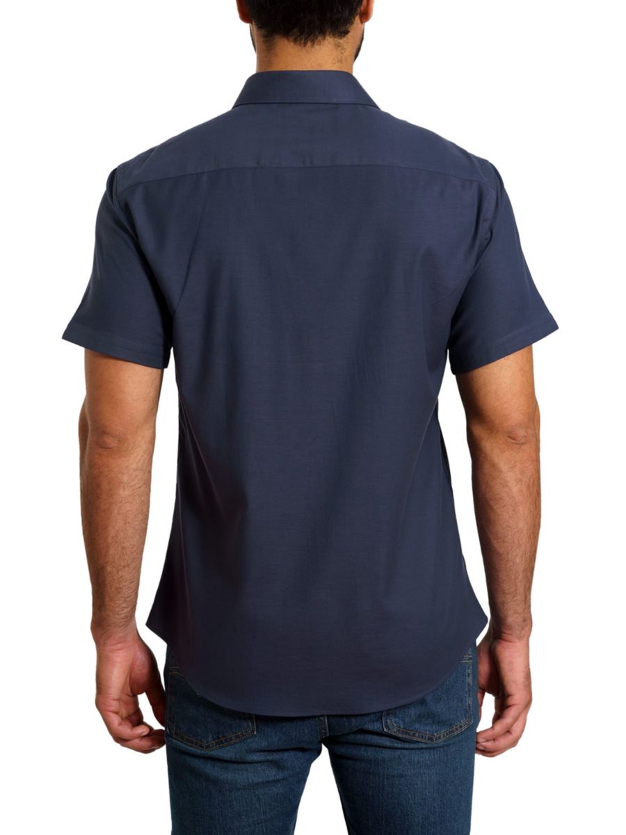 Эта рубашка с короткими рукавами изготовлена из дышащего хлопка и имеет заостренный воротник.