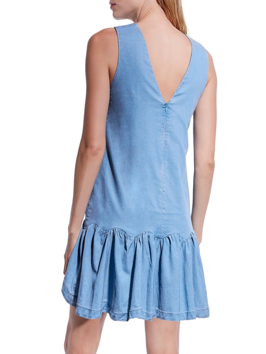 AS by DF предлагает платье-трапецию без рукавов с V-образным вырезом и многоуровневым подолом для лёгкой свободы движений. Платье, созданное с вниманием к деталям, имеет молнию сзади и свободный силуэт, который легко гармонирует со структурой.