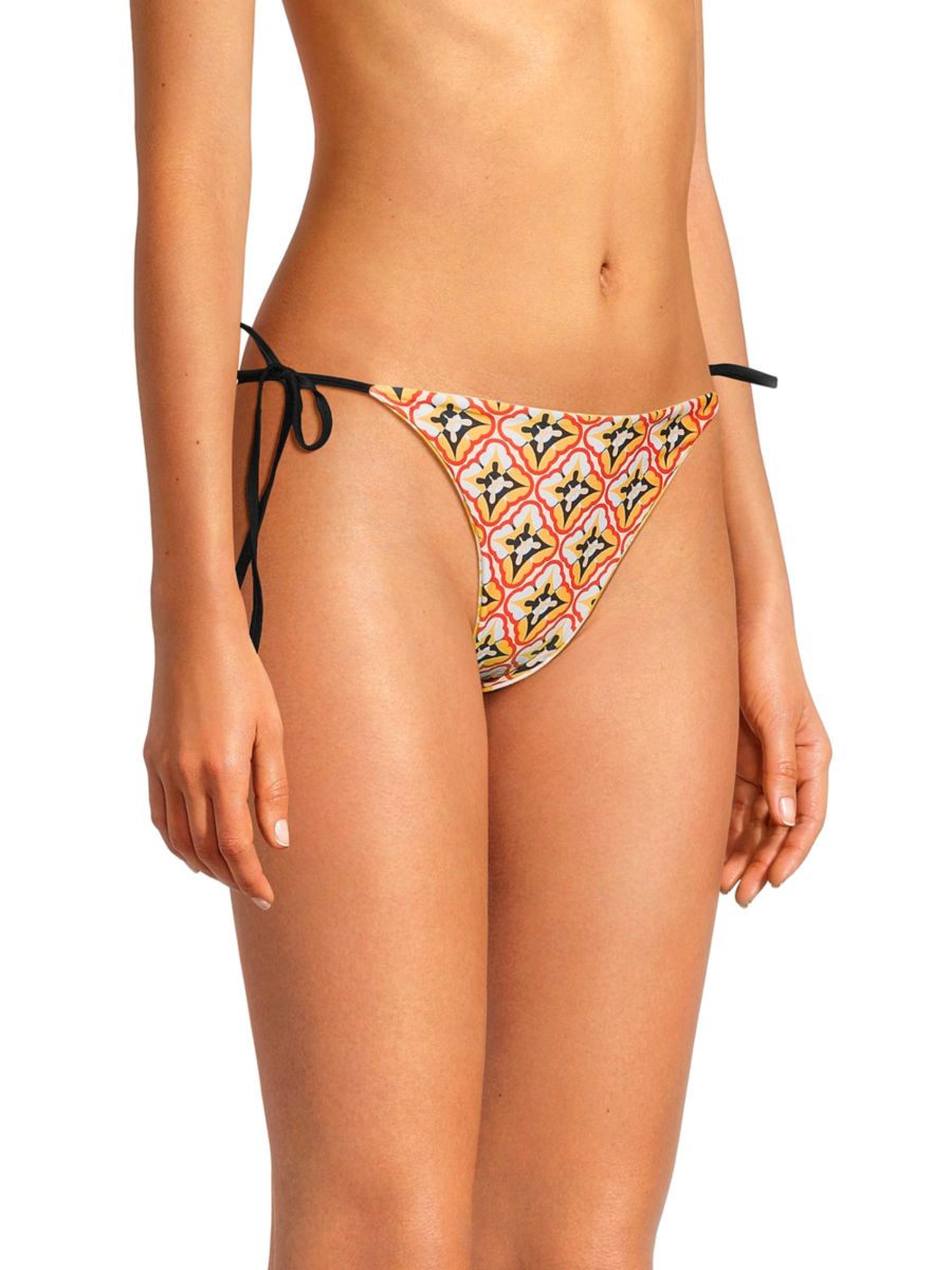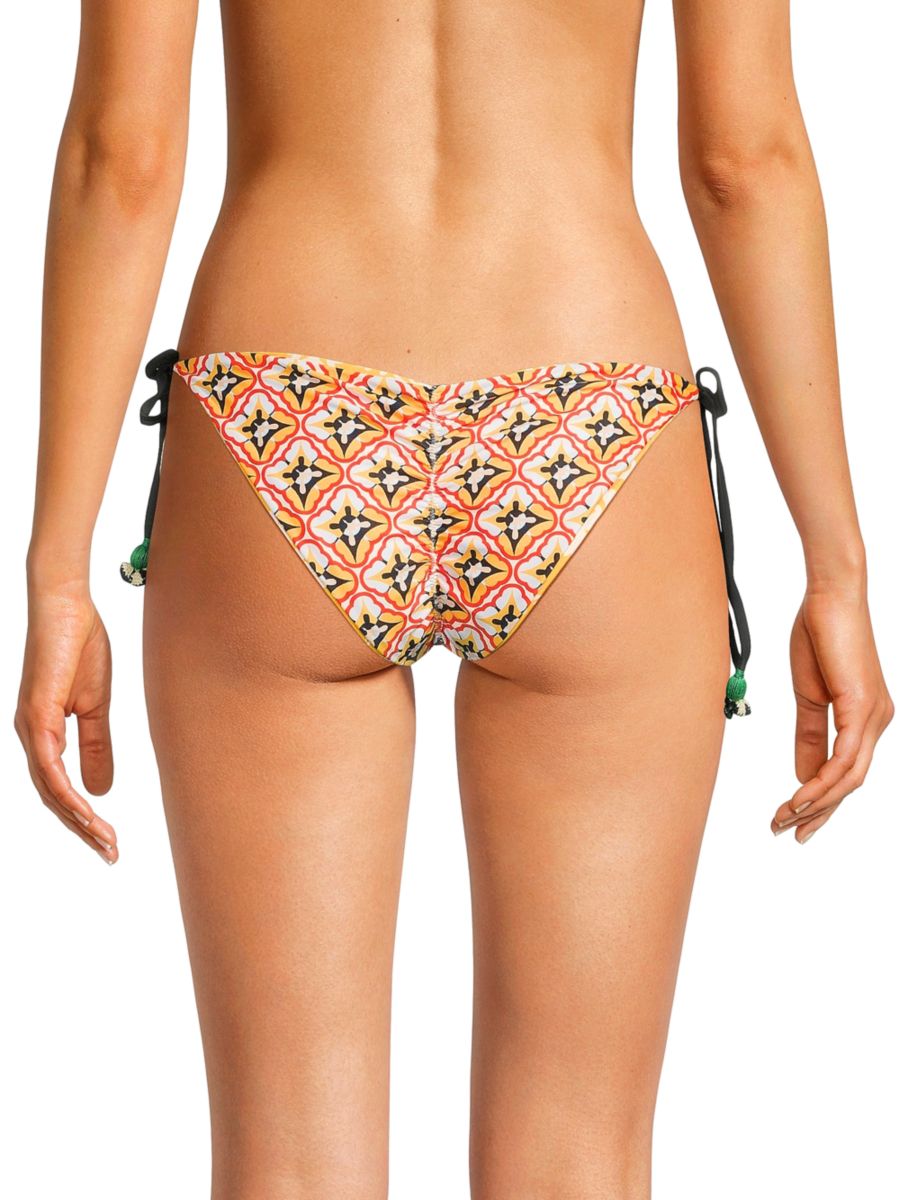 Плавки-бикини Alegria от Agua Bendita с ярким принтом и завязками по бокам. Модель выполнена из гладкой, струящейся ткани и обеспечивает идеальную посадку.