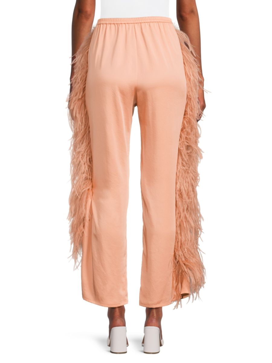 Эти шикарные брюки украшены отделкой из страусиных перьев — идеальный выбор для модного образа.
