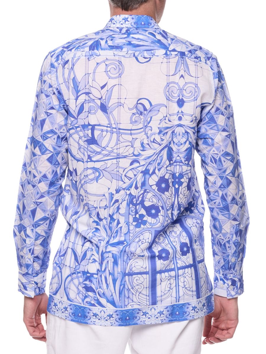 Эта повседневная рубашка с принтом сшита из смесовой льняной ткани и имеет облегающий крой.