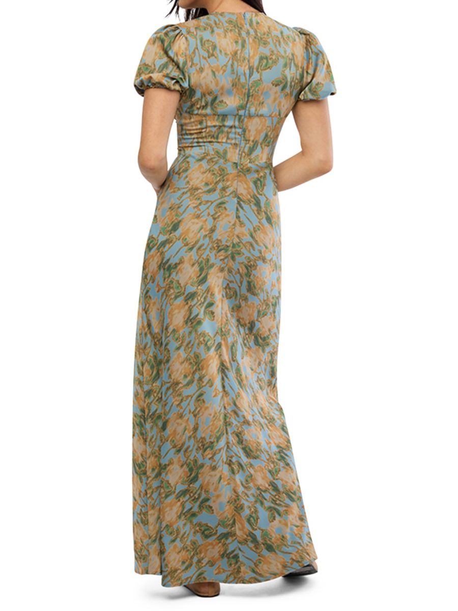 Это макси-платье с цветочным принтом от WeWoreWhat отличается эффектным глубоким вырезом, объемными рукавами-буфами и эластичными манжетами. Платье выполнено из ткани с добавлением эластичной ткани, имеет облегающий силуэт и потайную застежку на молнию сзади с крючком и петлей для идеальной посадки.