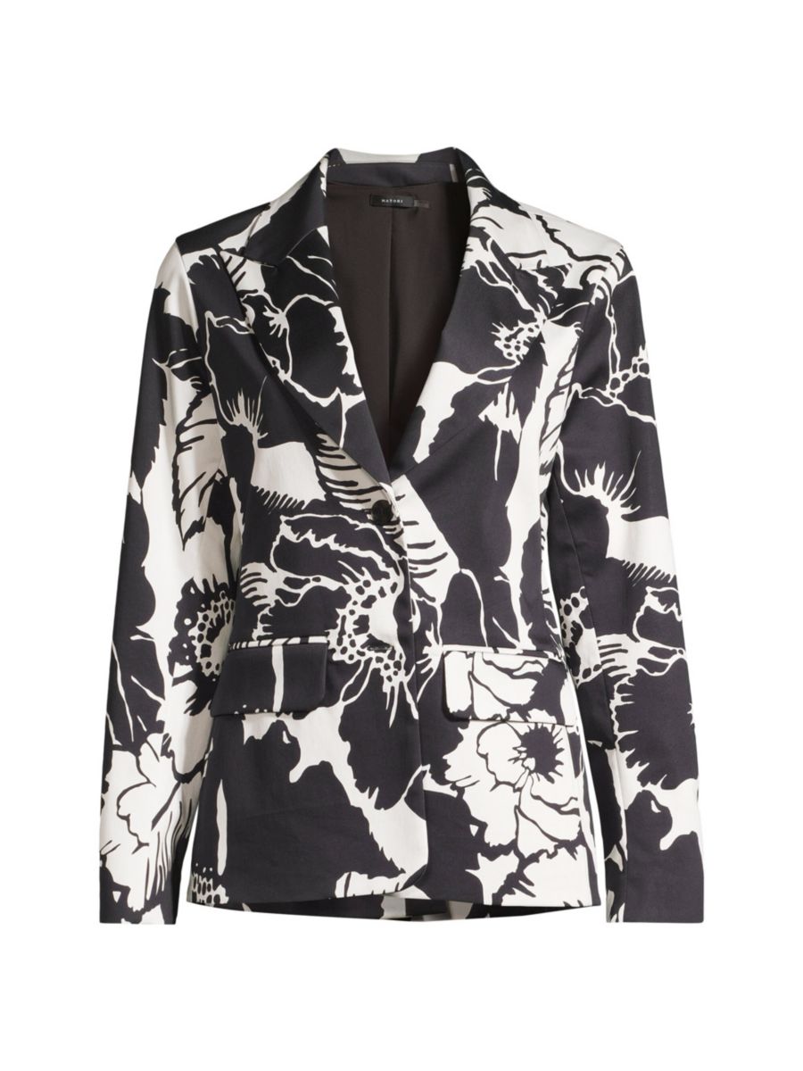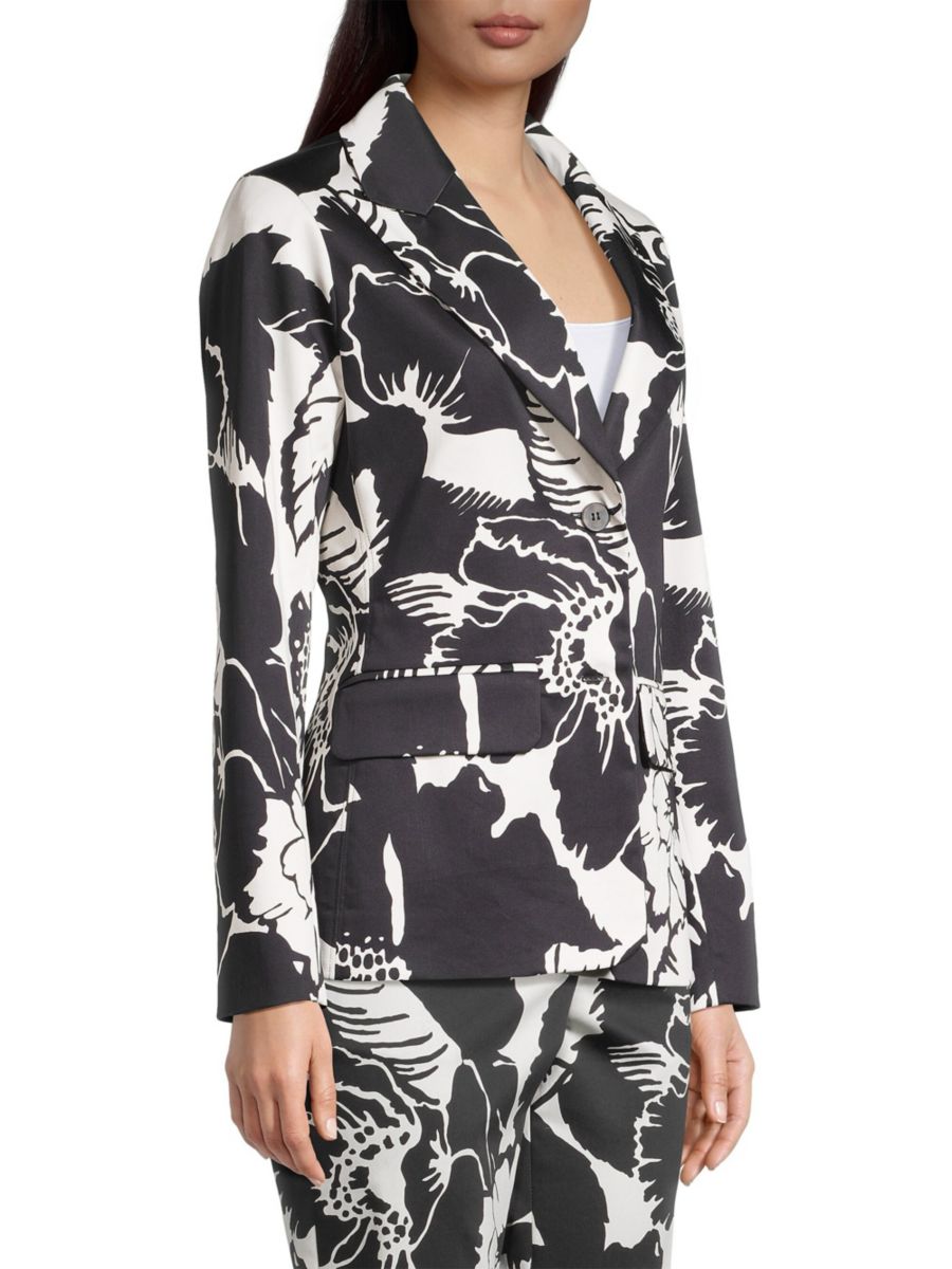 Из коллекции Лазурный берег. Этот блейзер Natori, сшитый из ткани с добавлением хлопка чинос, украшен цветочным узором.